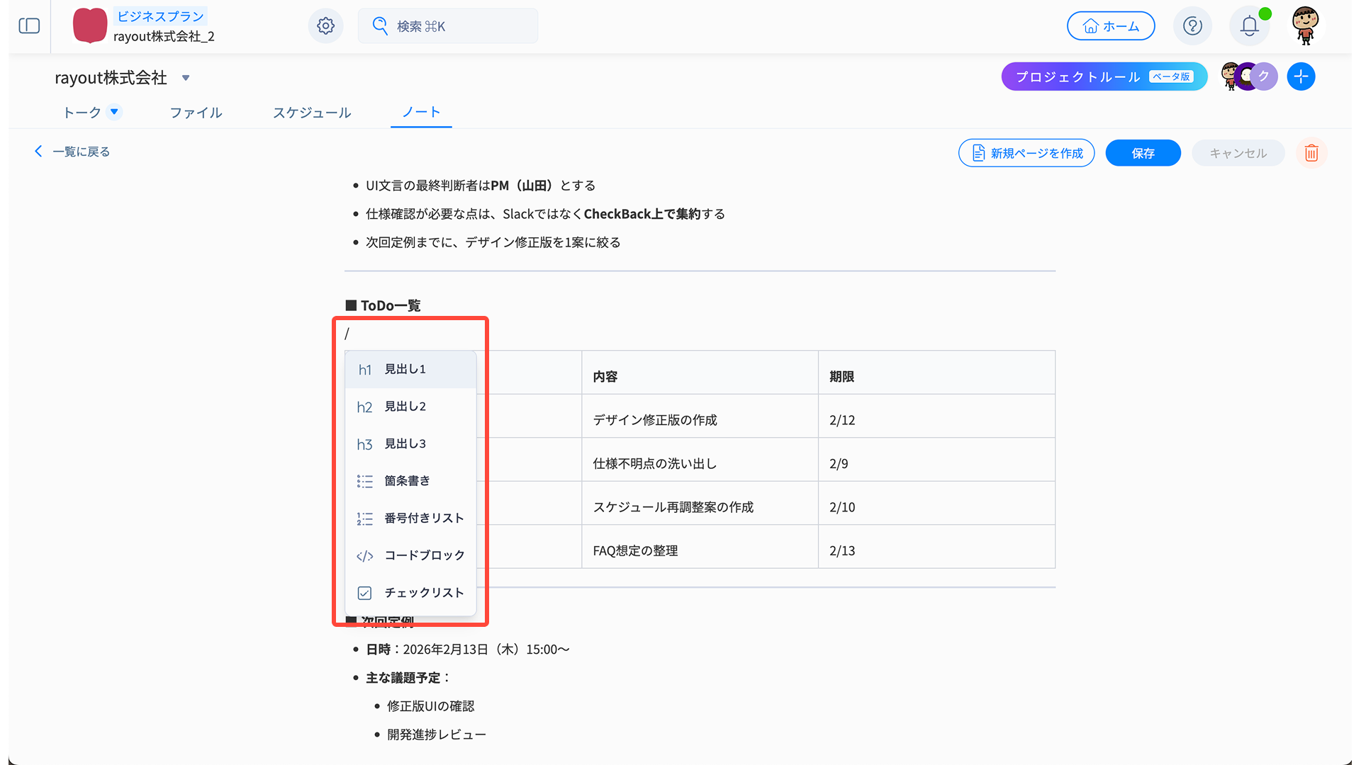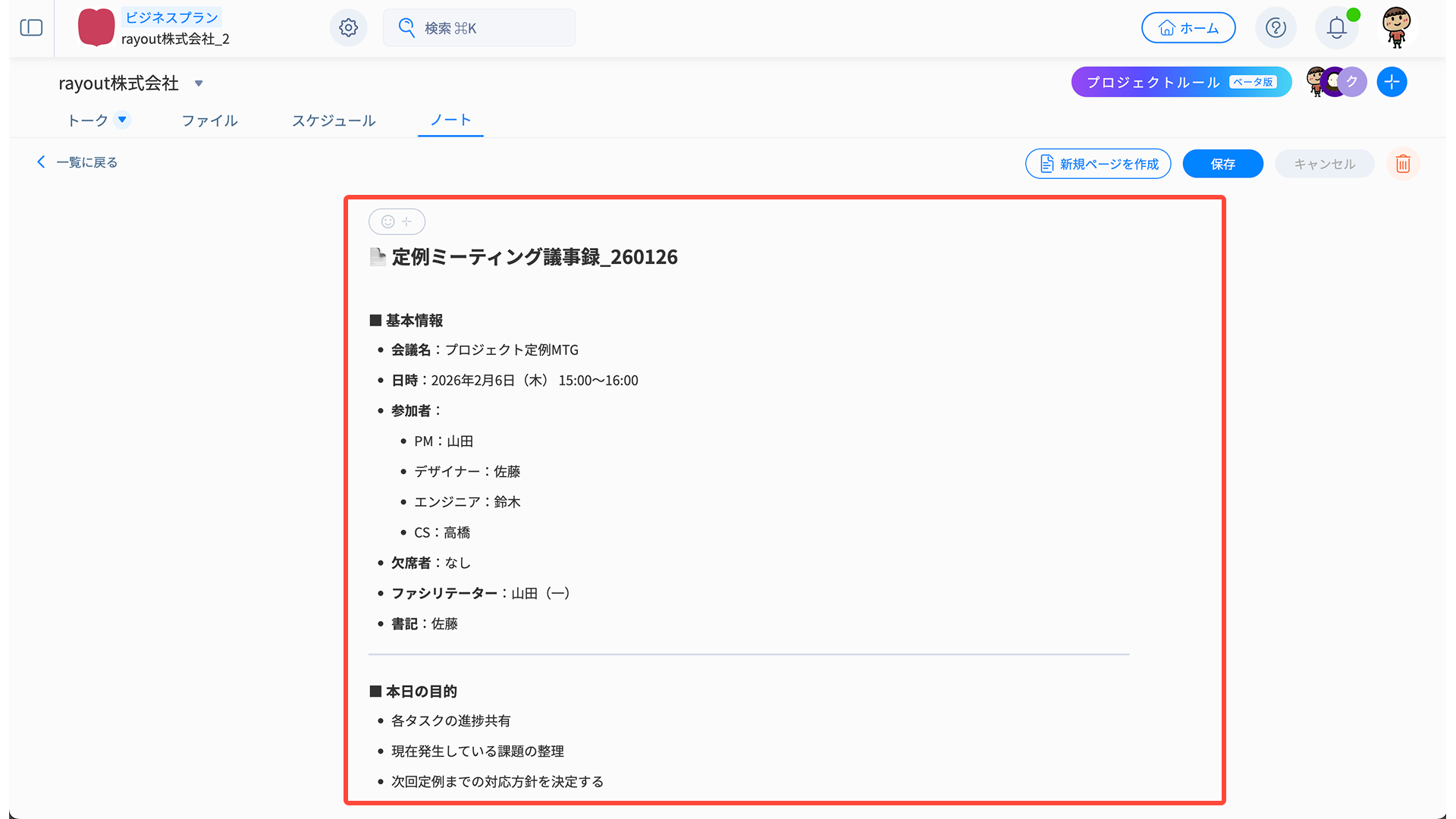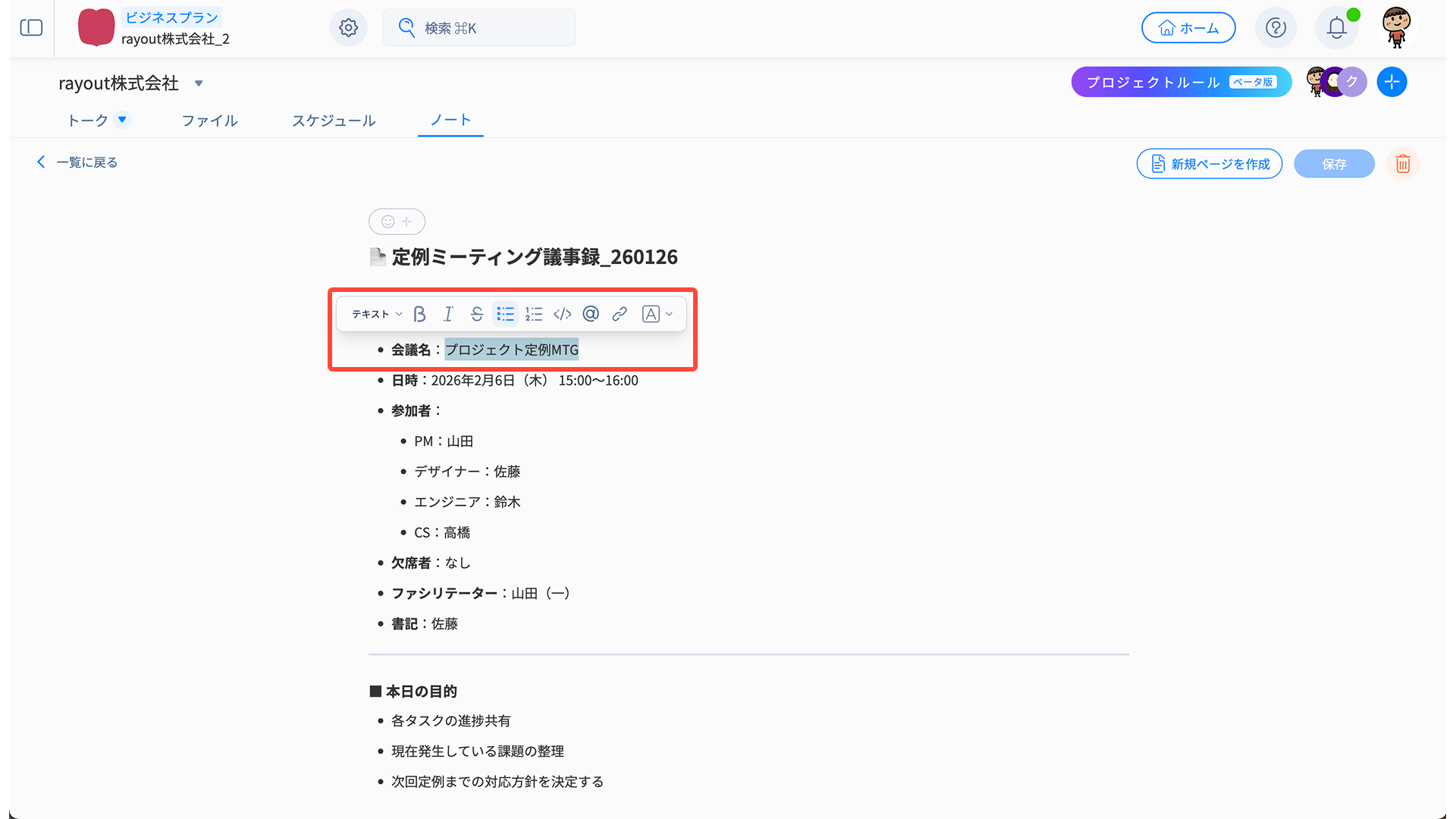 ノートに議事録を残すことで、判断の根拠をエビデンスとして共有し、プロジェクトメンバーの目線が常に揃った状態を保ちます。