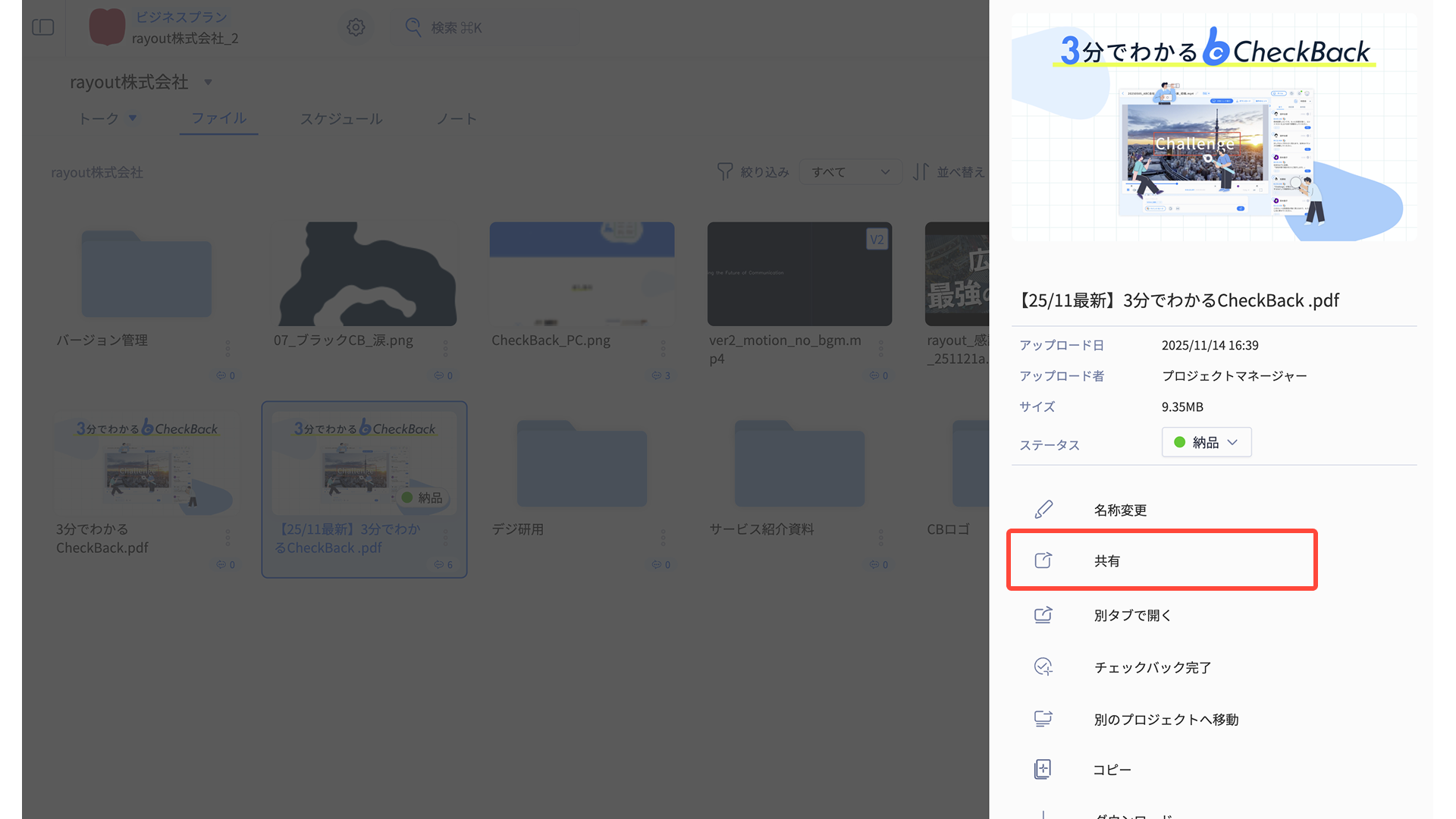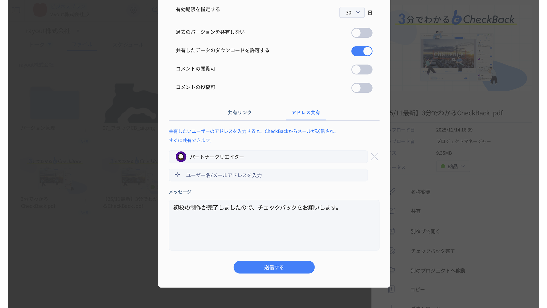 共有リンクを利用することで、CheckBack内の情報を簡単かつ安全に共有できます。