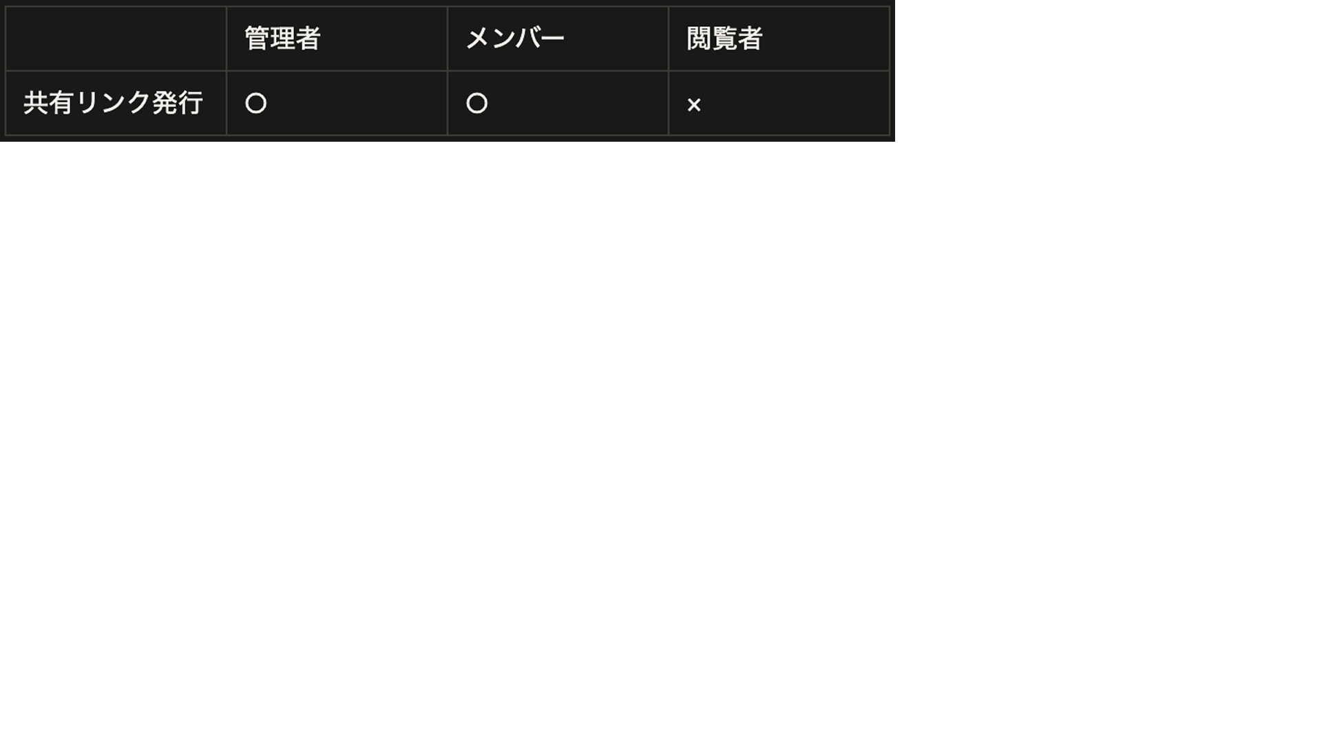 各ユーザーの権限に応じて、共有リンクの発行に制限があります。