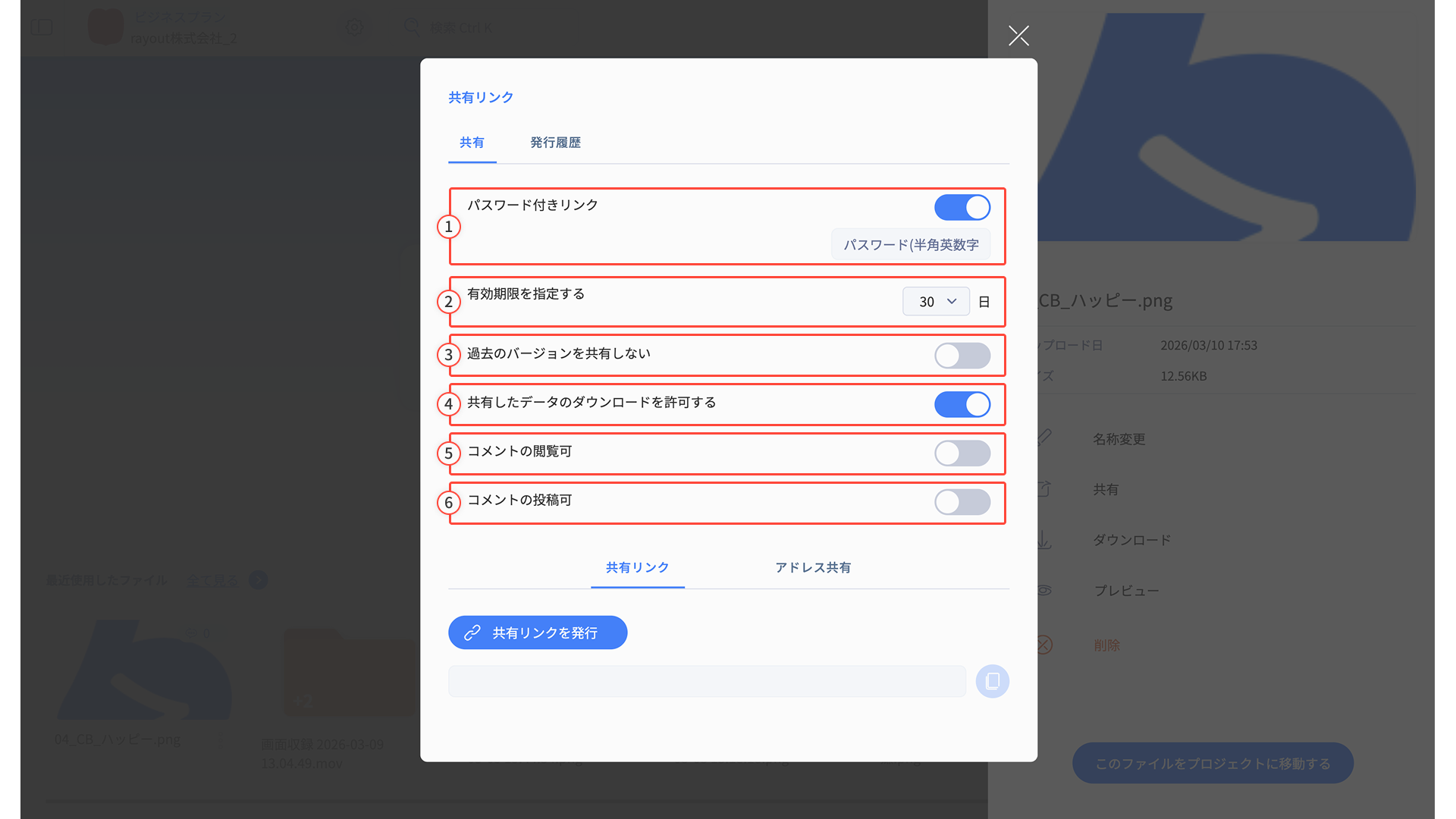 4.共有リンク発行時のセキュリティ設定