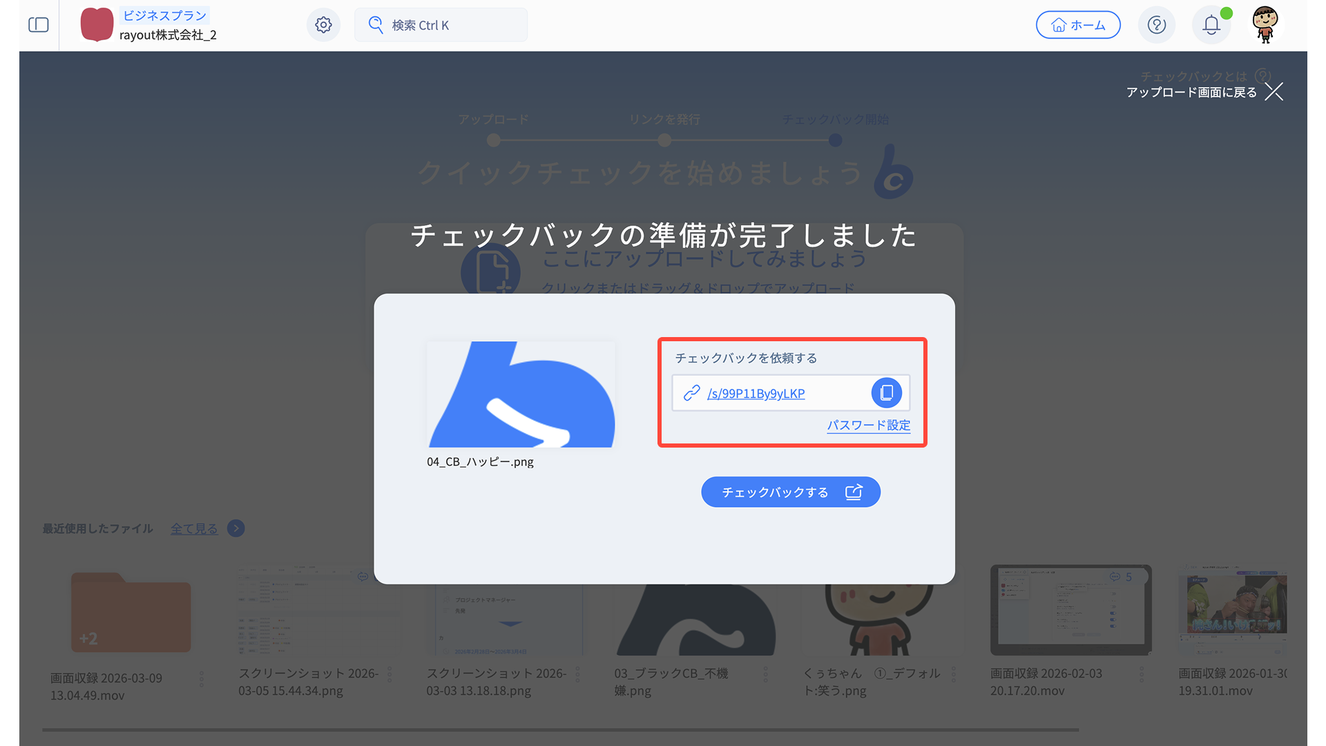 共有リンクを送るだけで、相手はそのままCheckBack上で内容を確認できます。