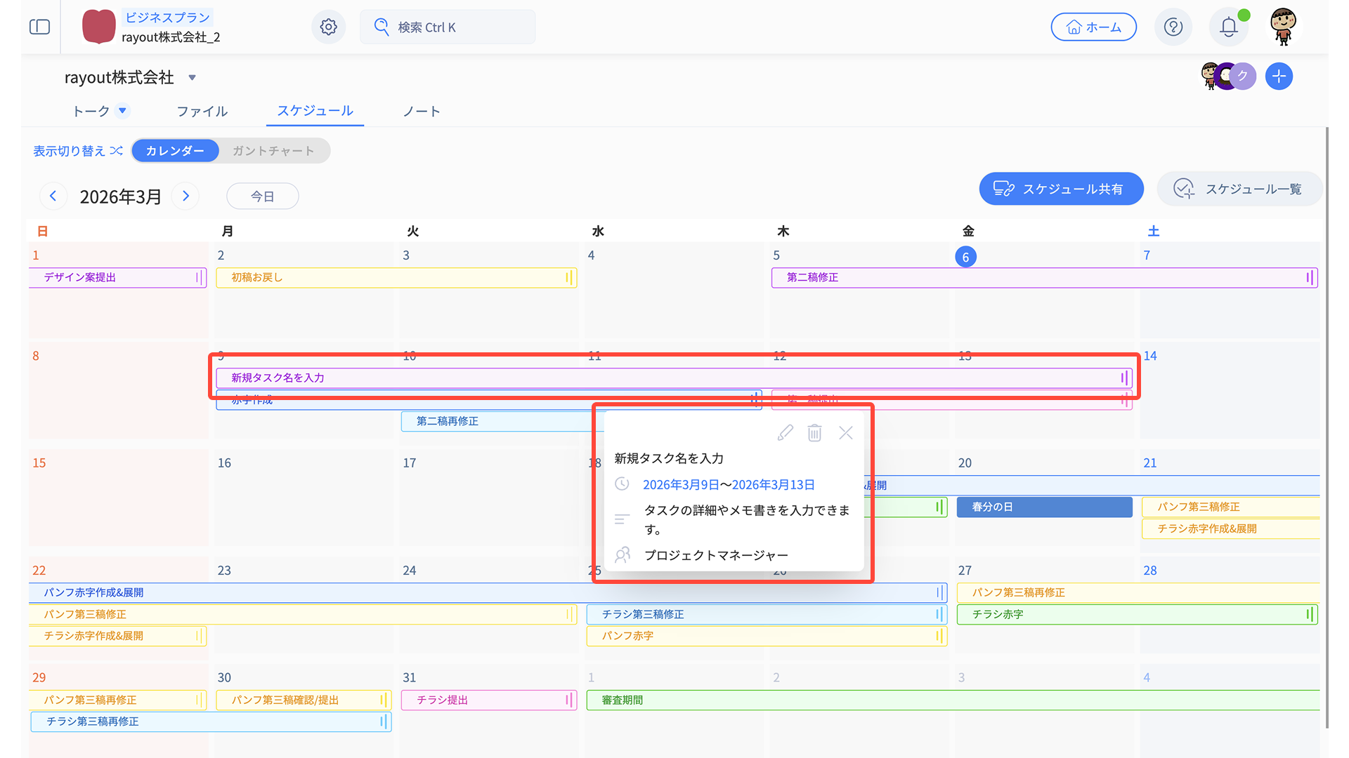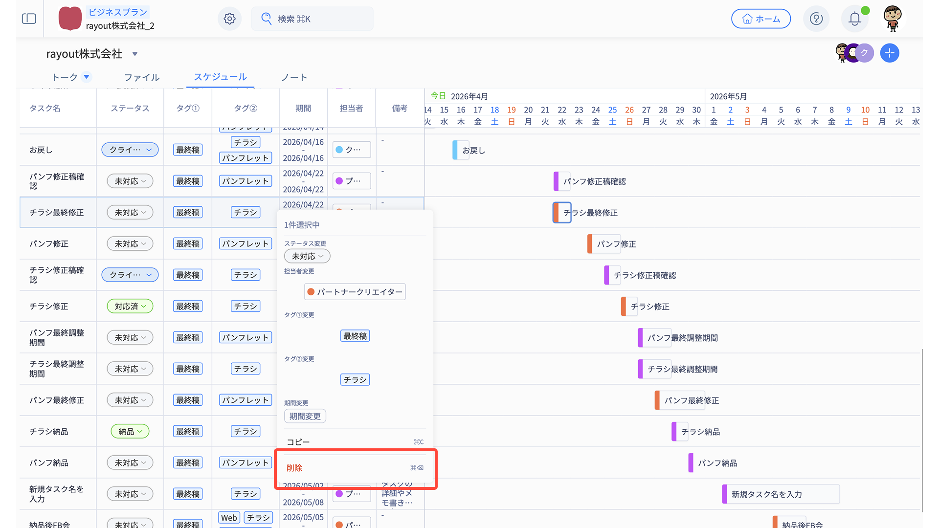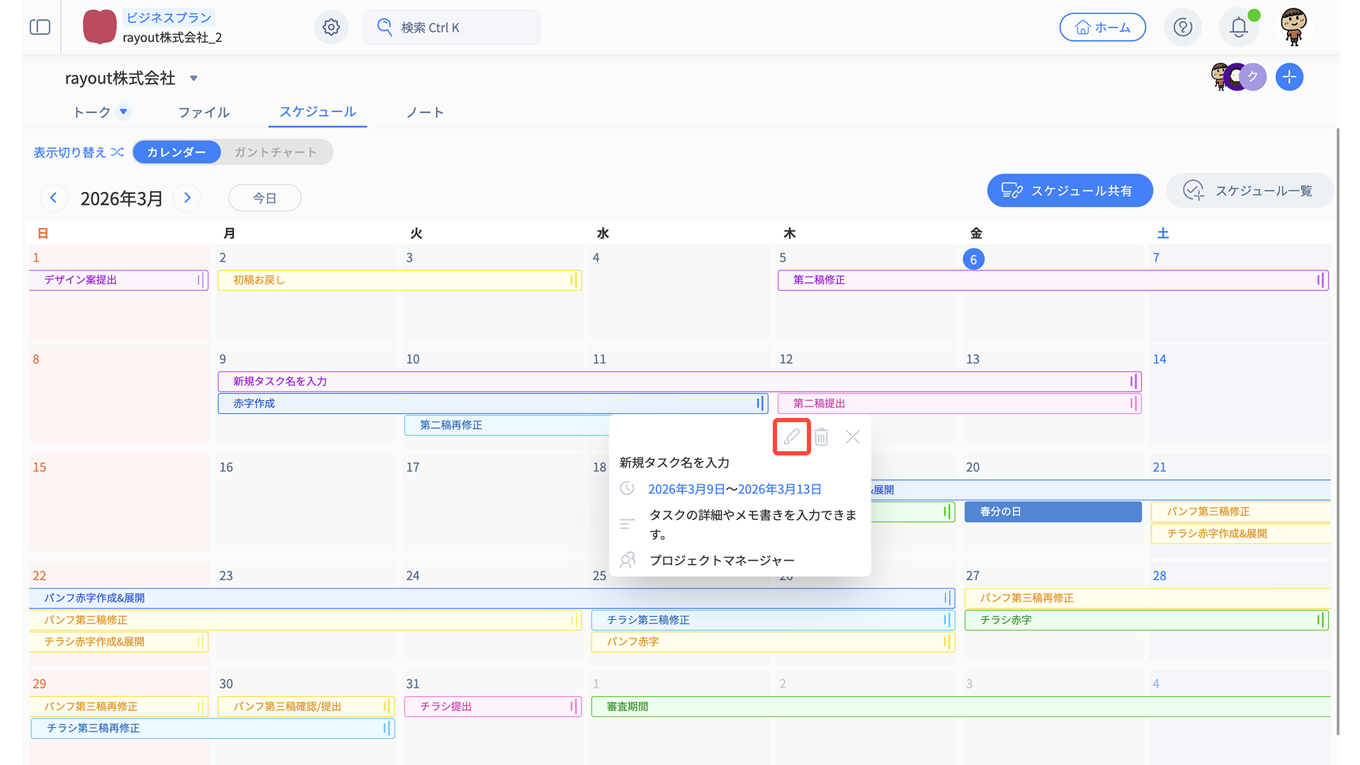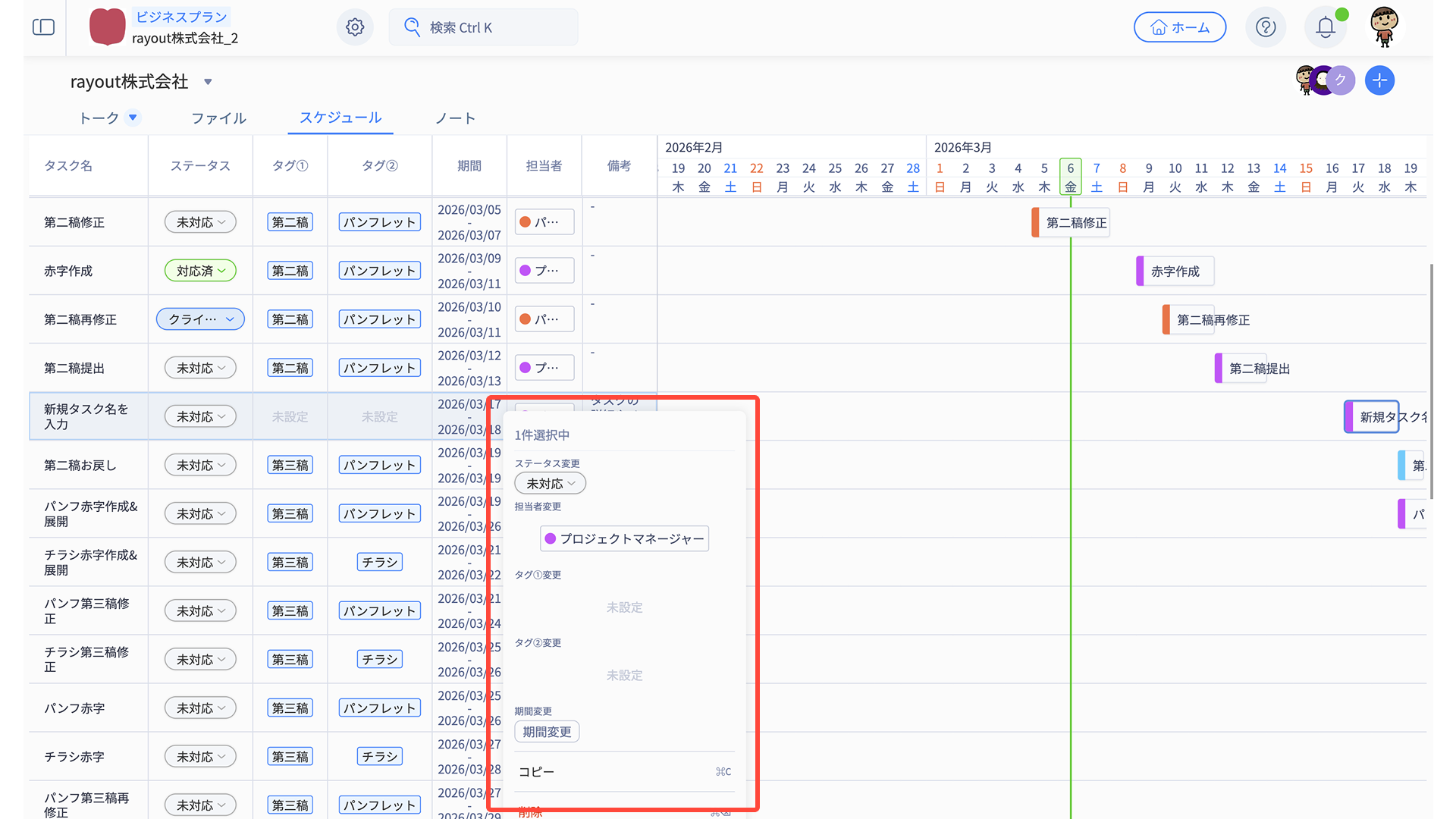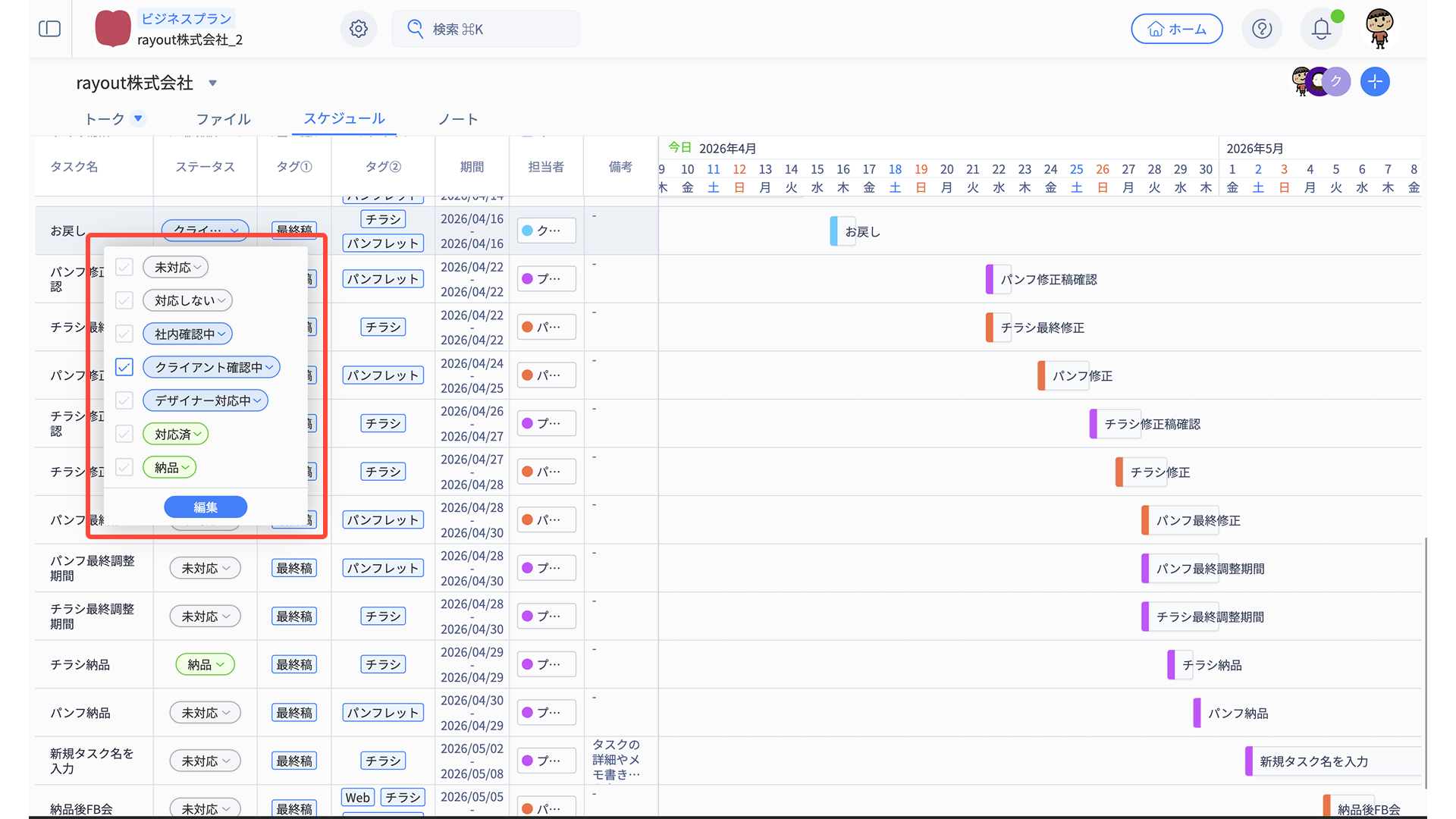 - スケジュール編集メニューから、適宜タスク内容を編集