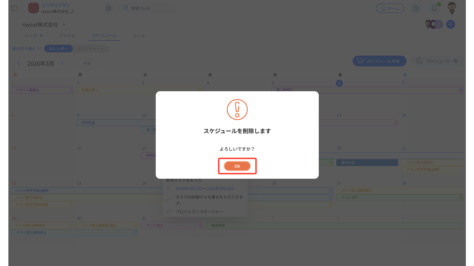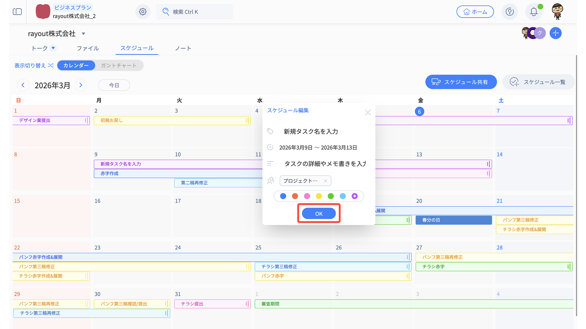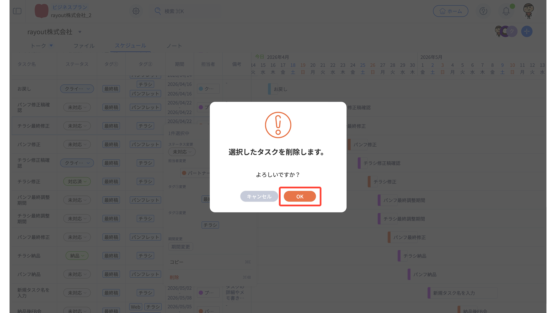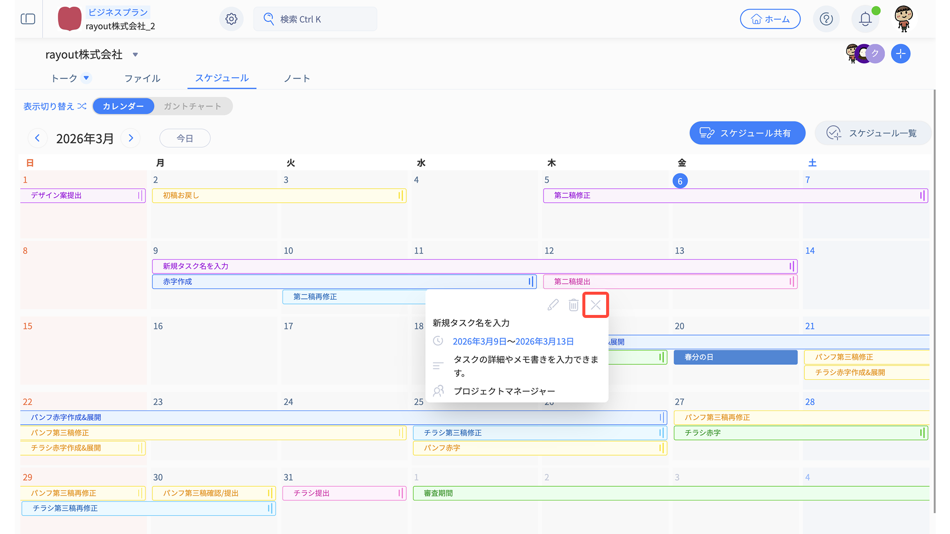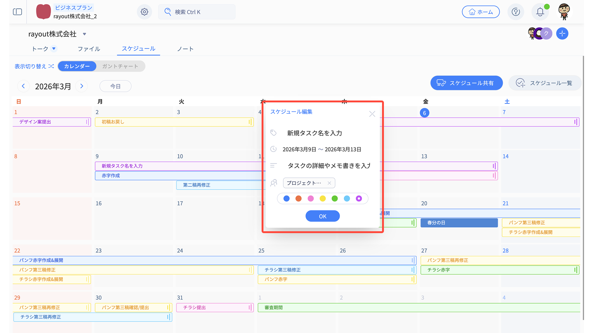 - スケジュール編集メニューから、適宜タスク内容を編集