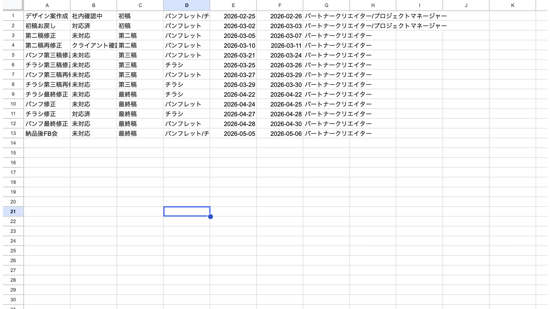 - クライアント提出用の進行表にしたいとき