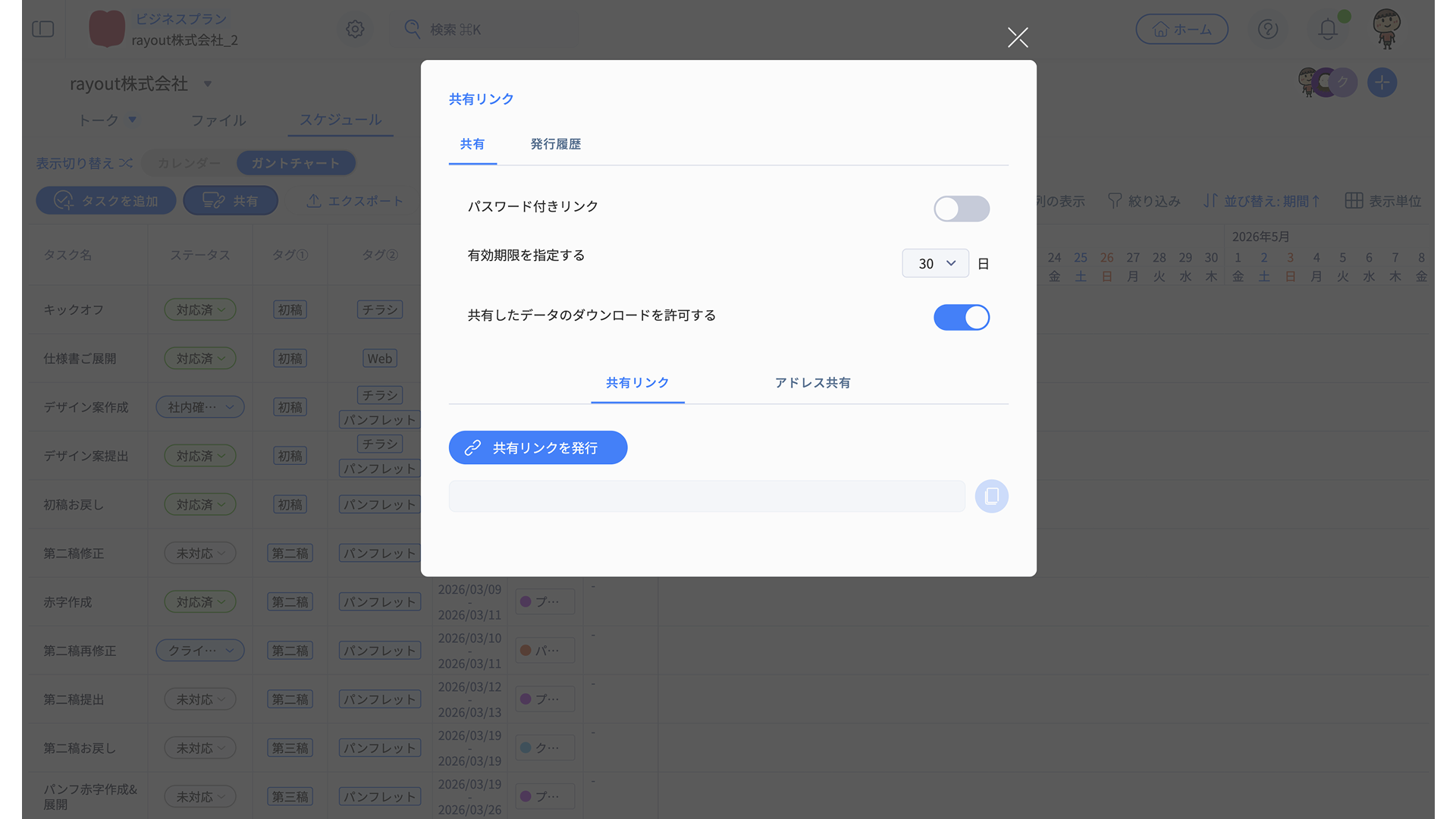 スケジュールの共有リンクを発行できます。