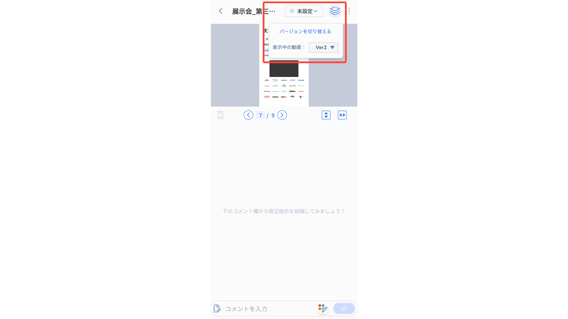 ファイルの閲覧、チェックバック画面でのバージョンの切り替えはスマートフォンからでも可能です。