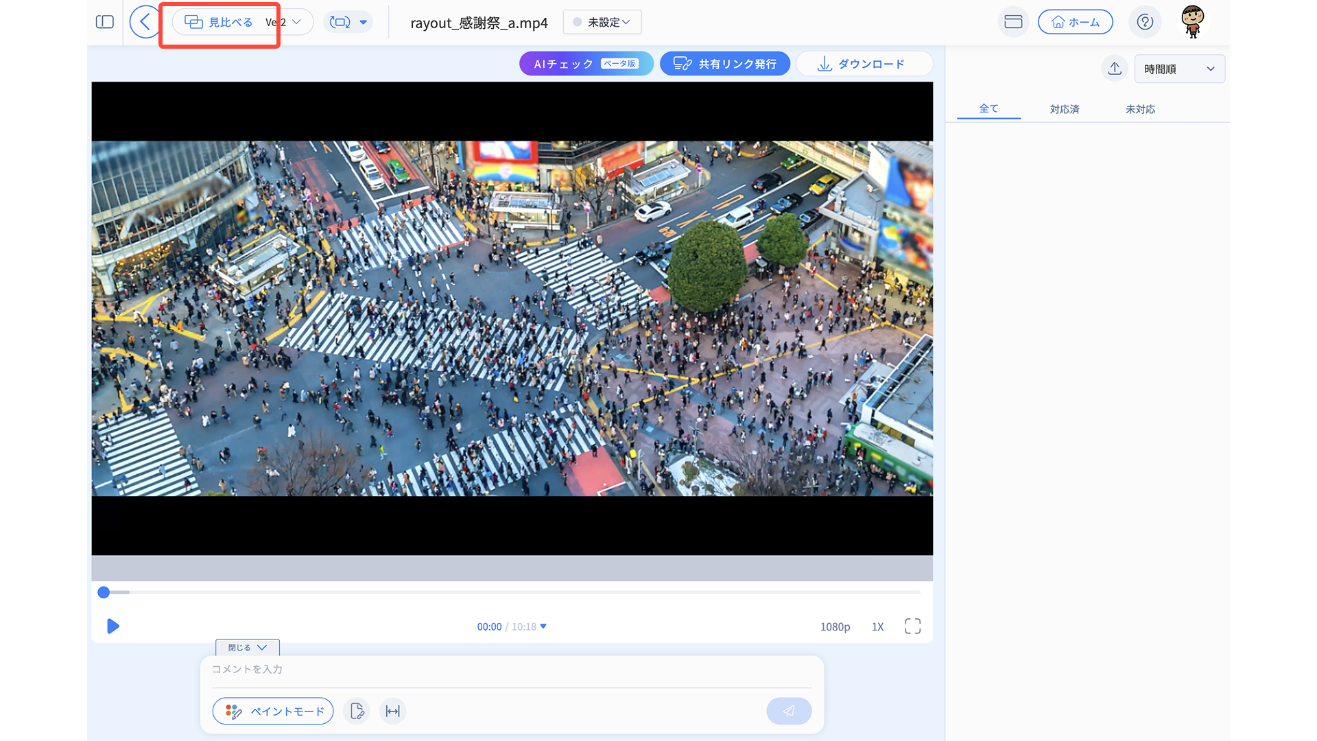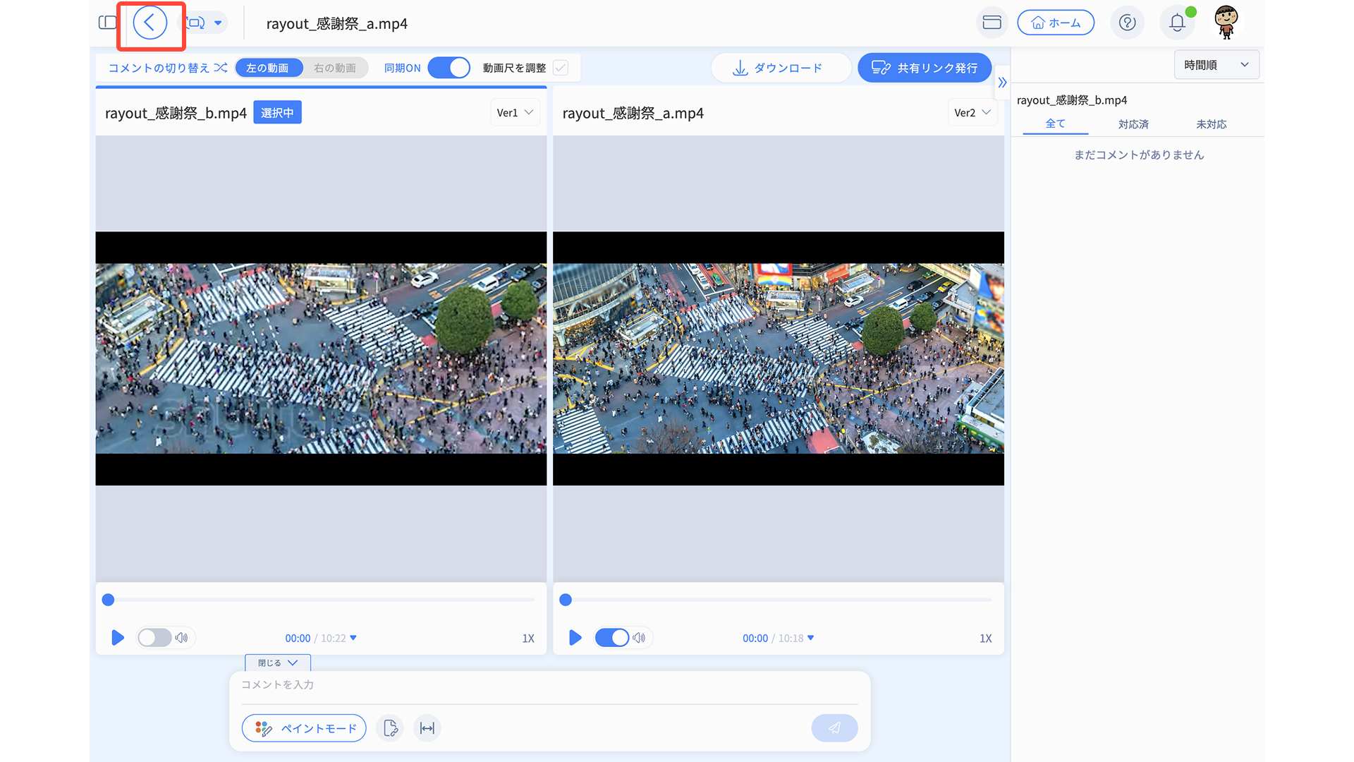 古いバージョンのコメントを確認しながらチェックバックを行った後、新しいバージョンに修正指示を書き込む際に使用します。
