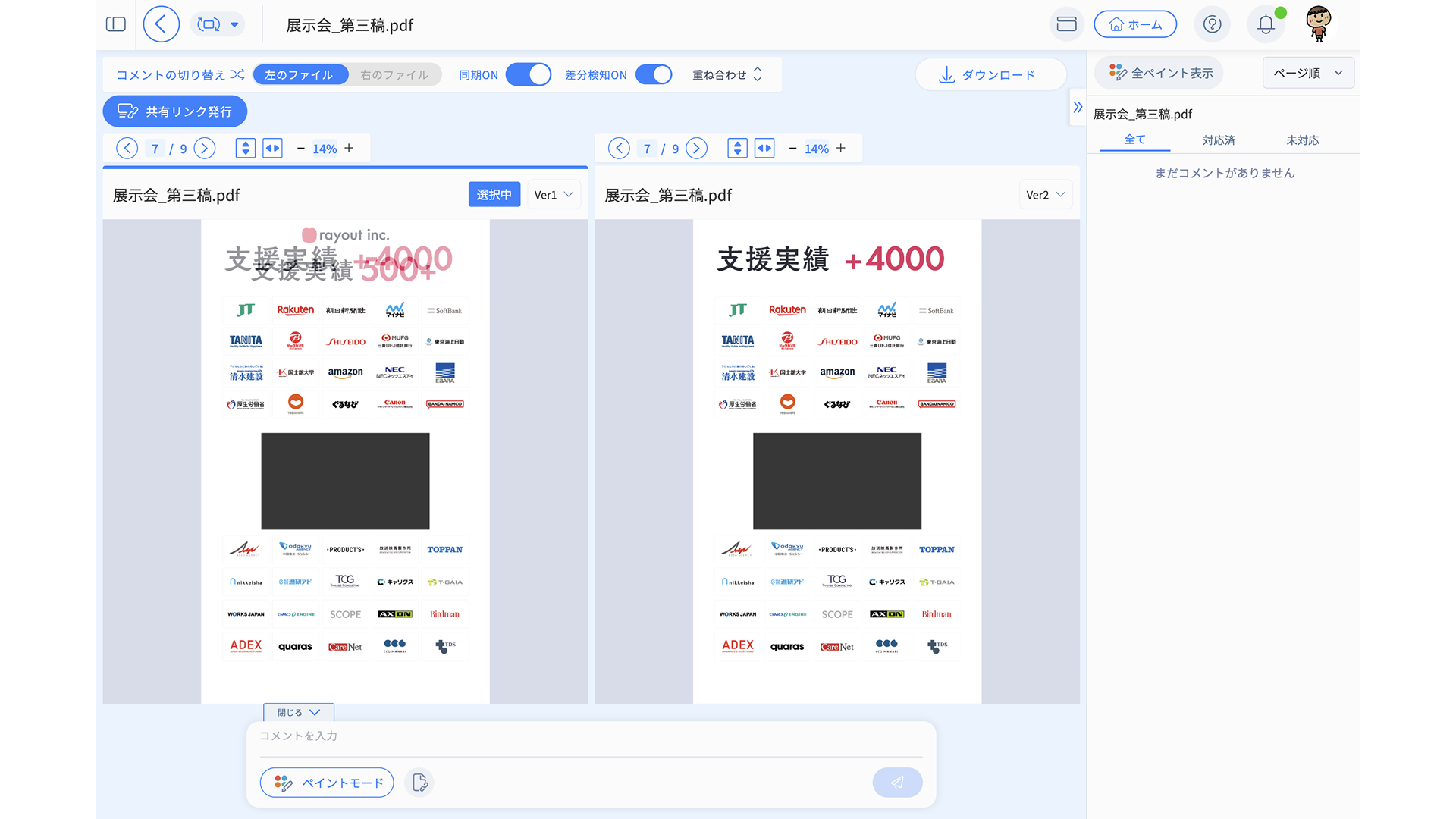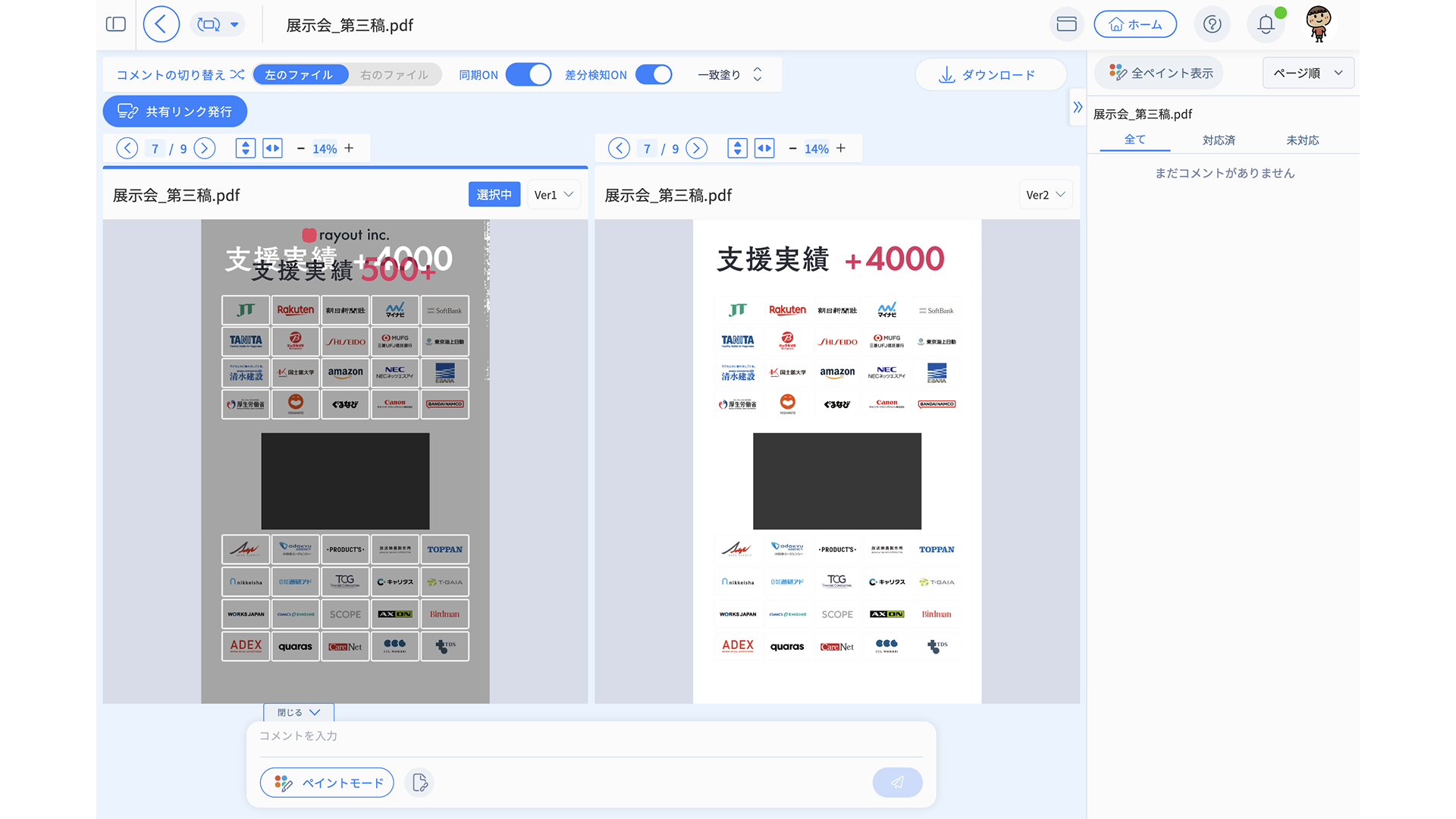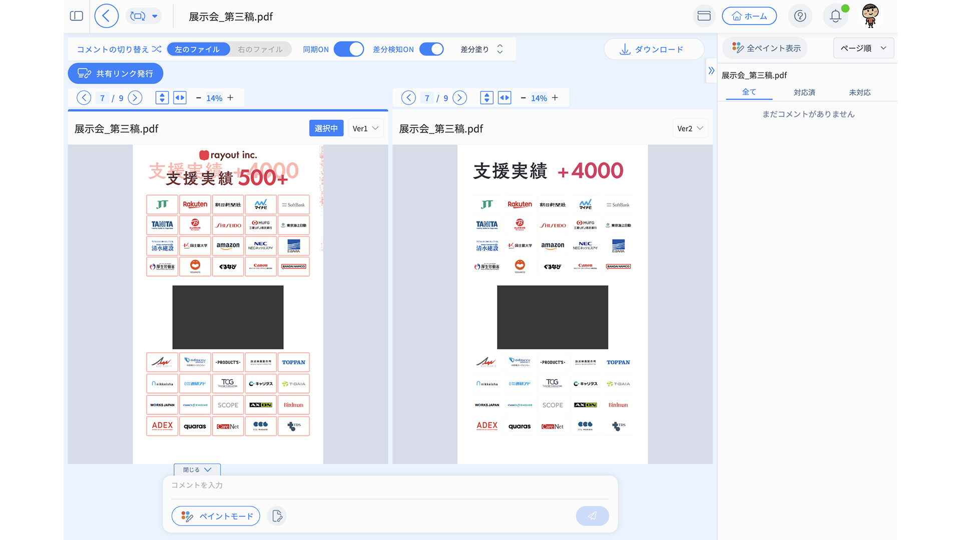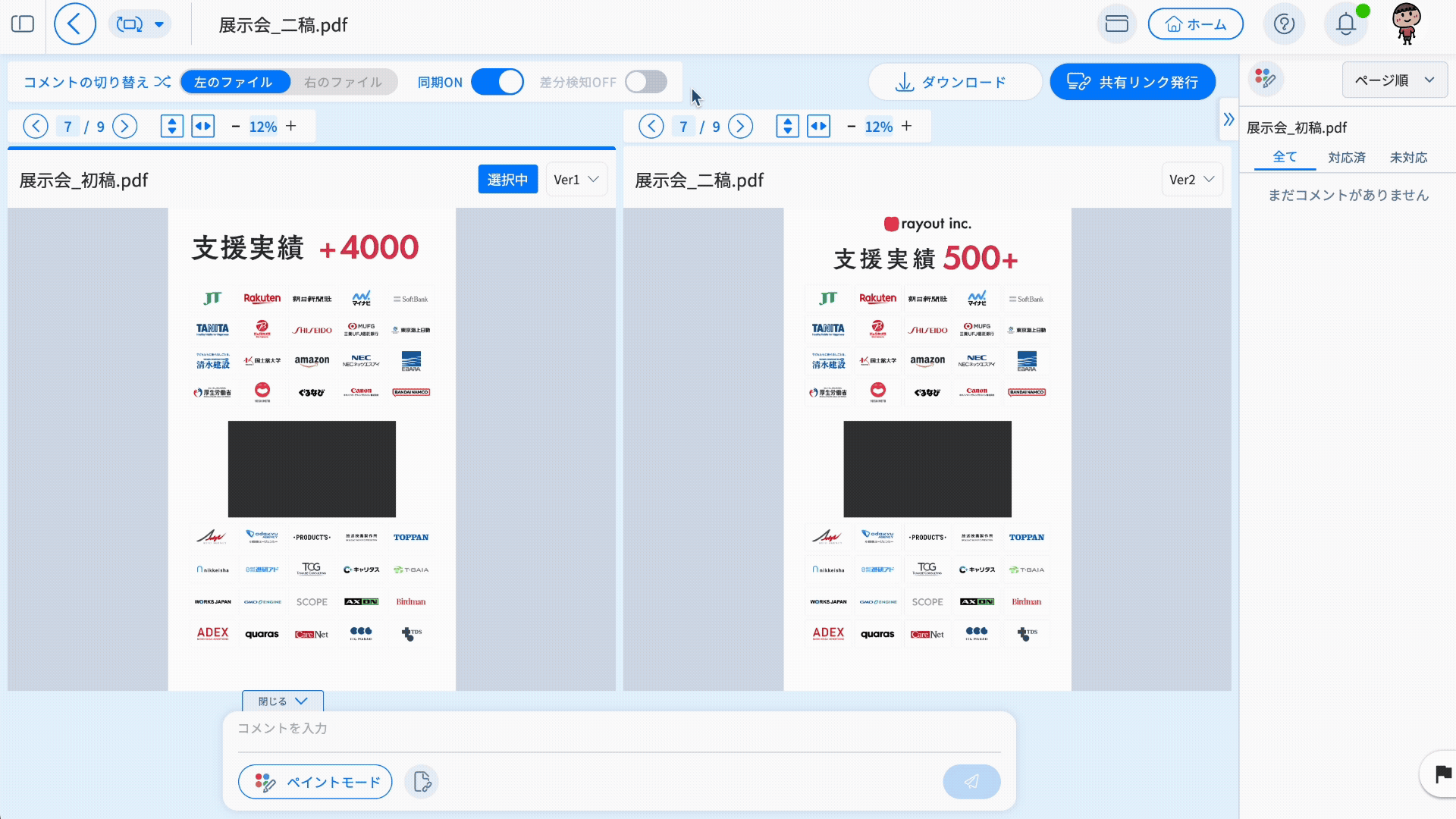 クライアントから「どこが変わったの?」と聞かれた場合でも、修正前後を並べて説明できます。