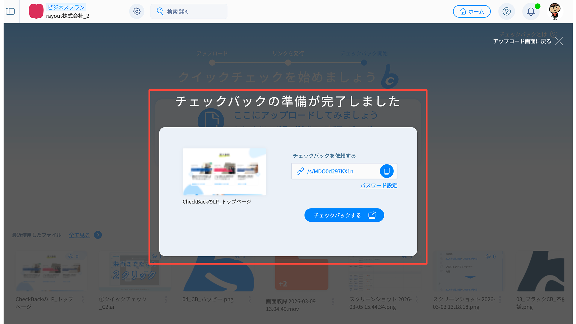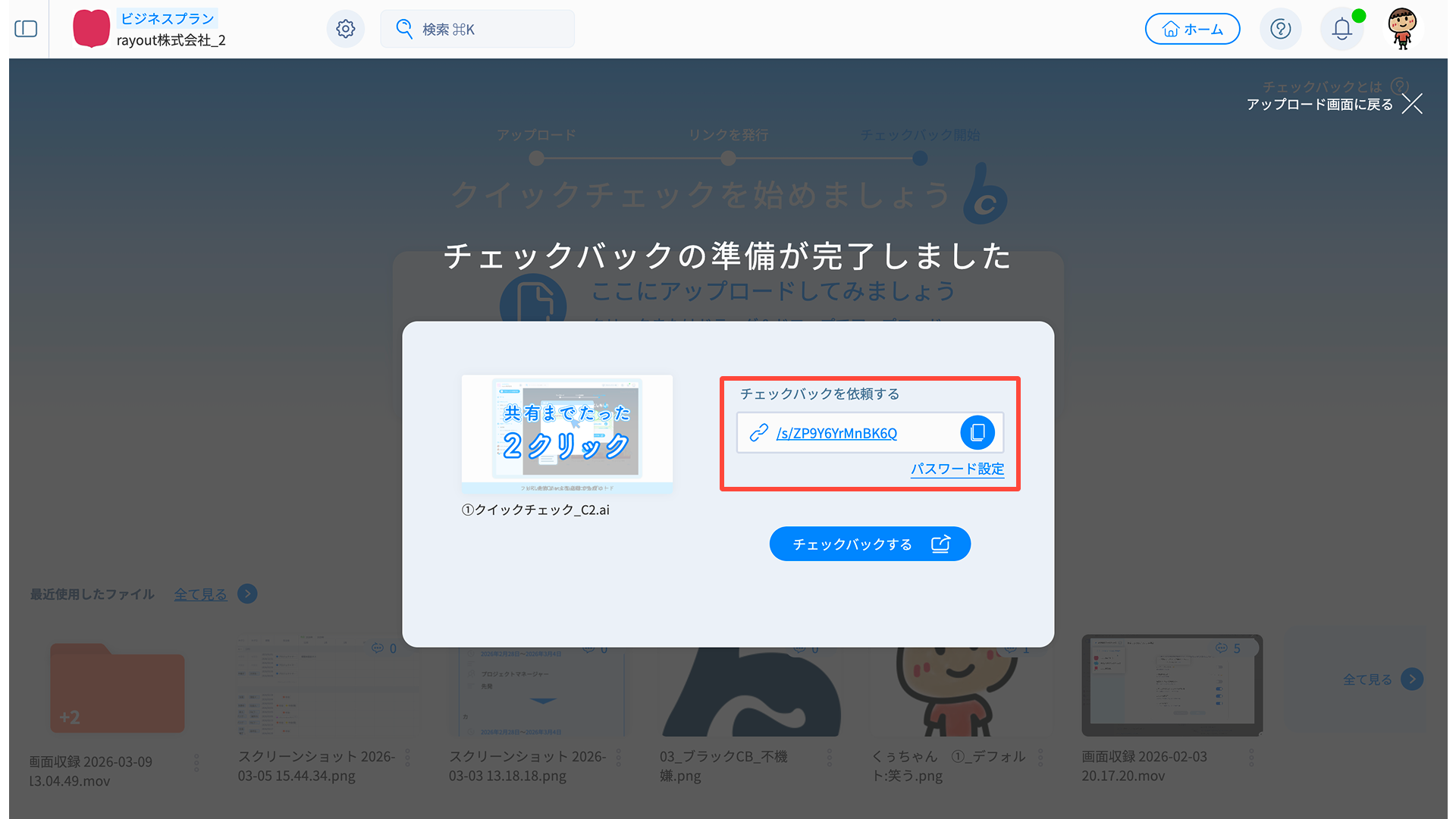 必要に応じてチェックバックを行い、共有リンクを発行しましょう。