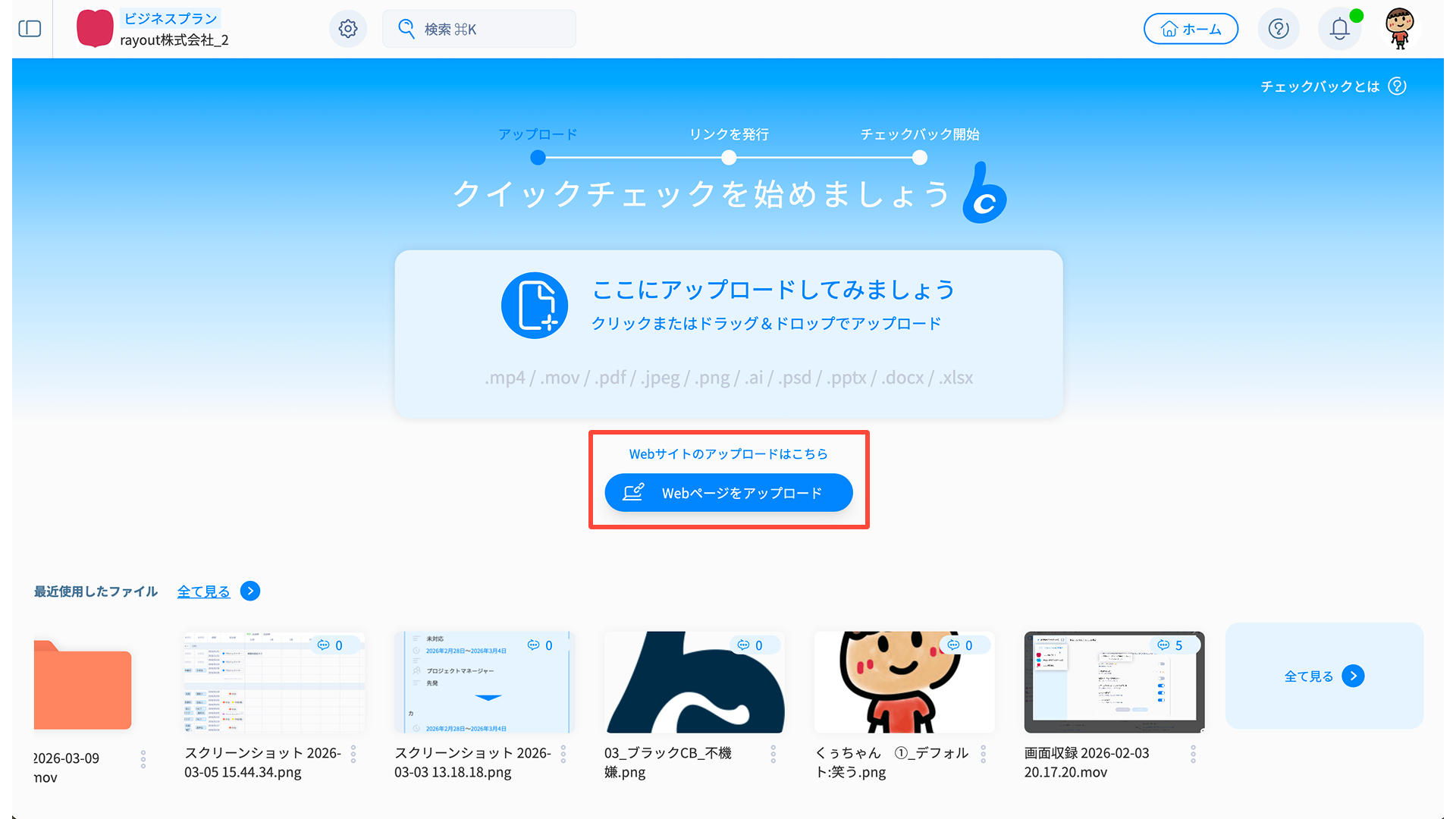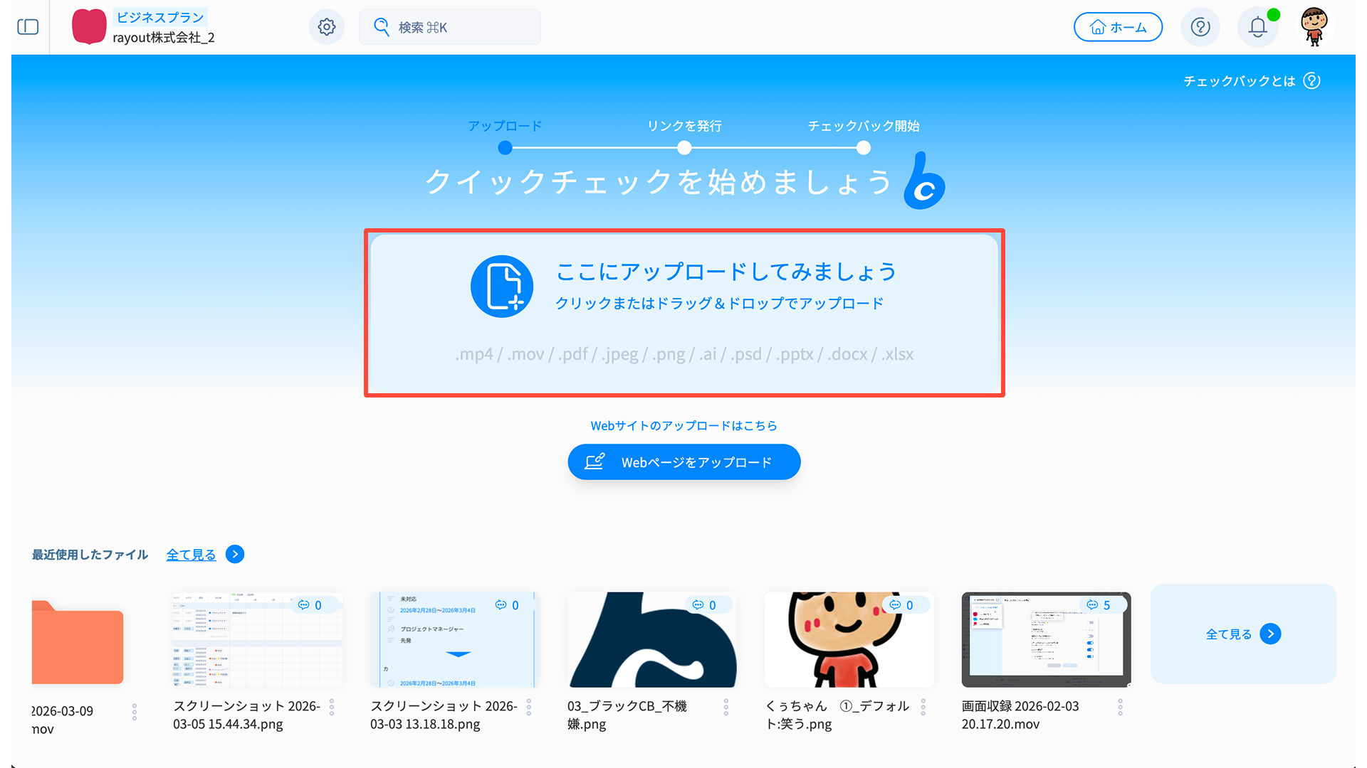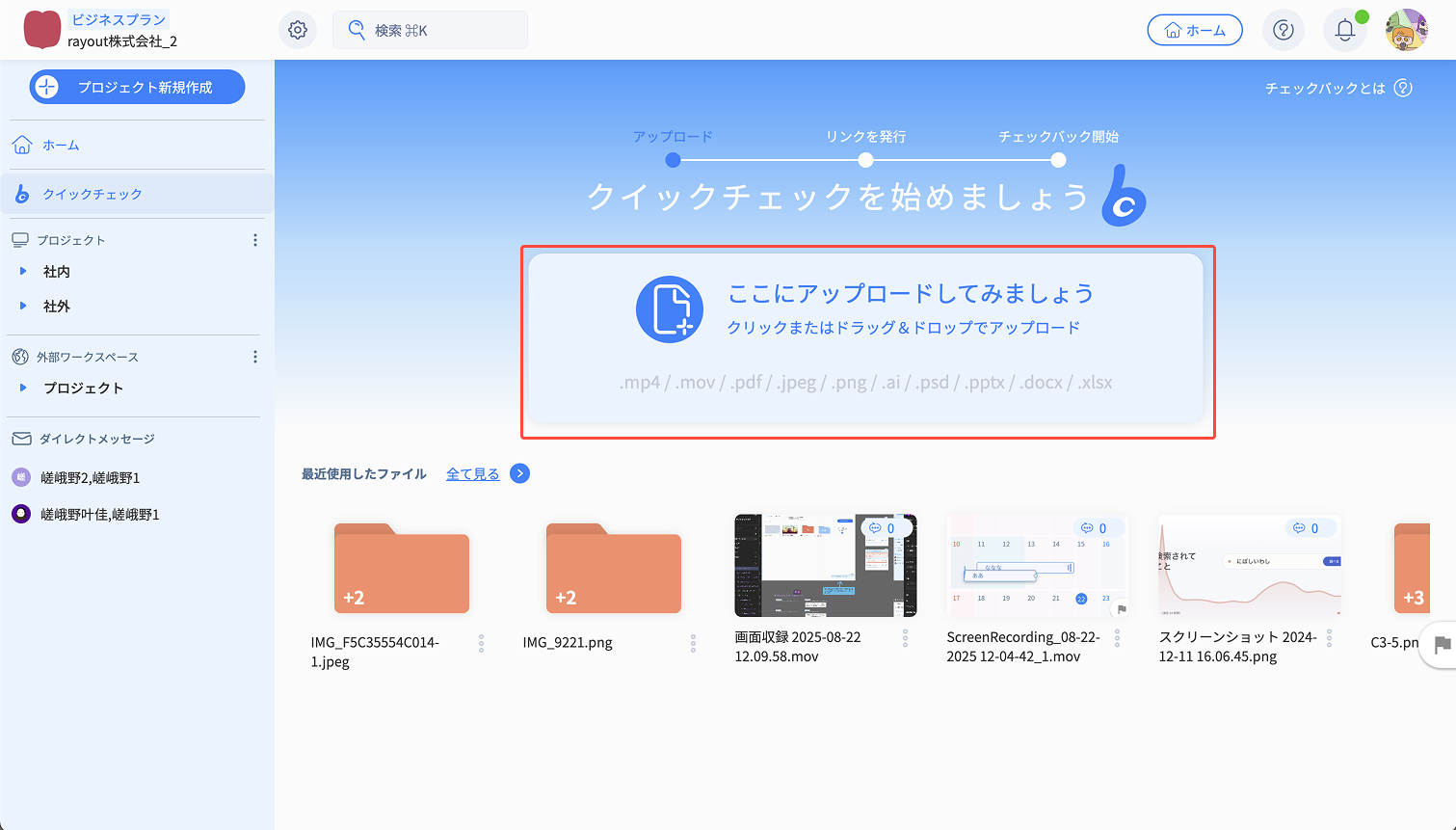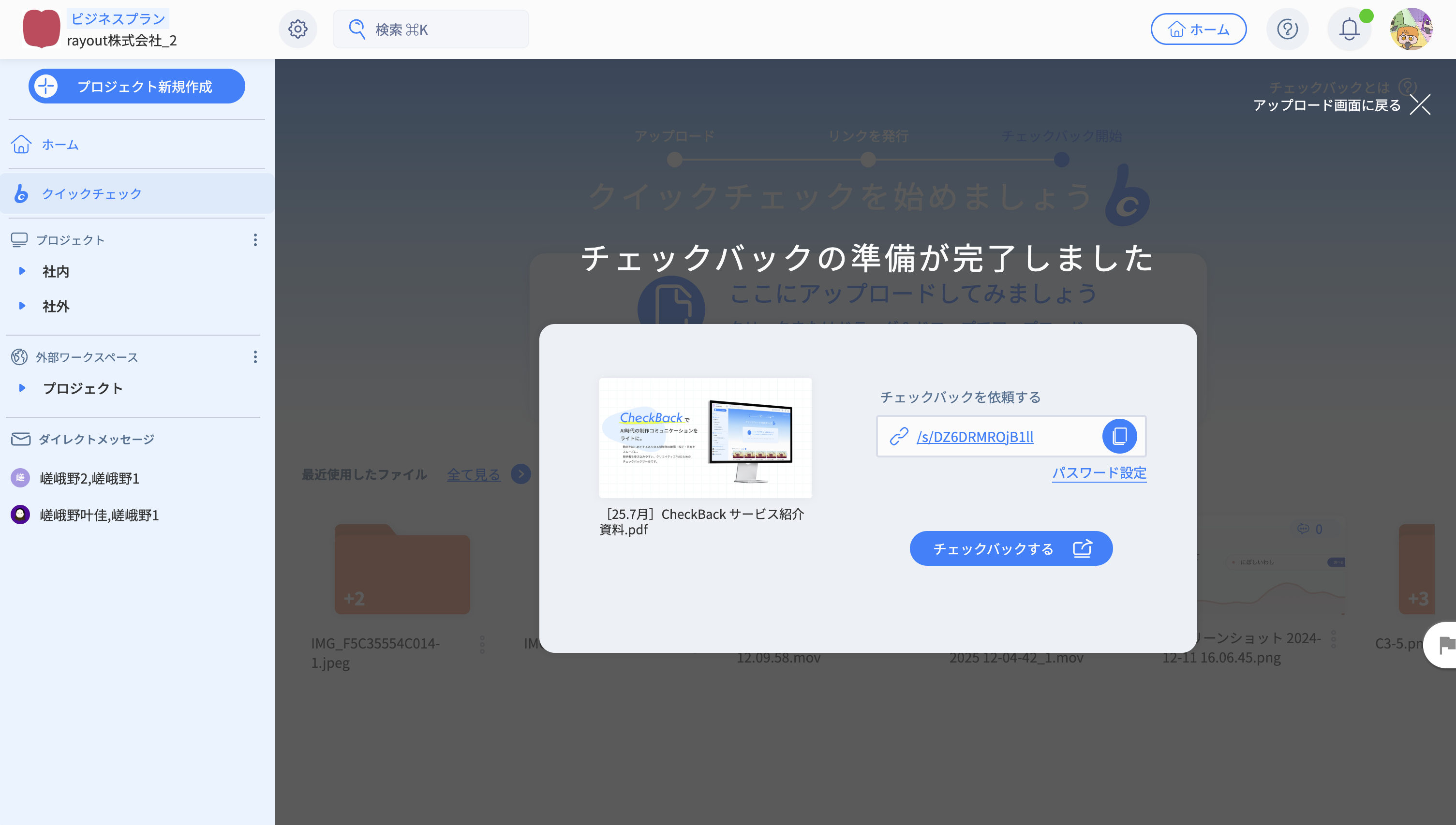 クイックチェックの最大の特長は、アップロードと同時にリンクが発行される点です。