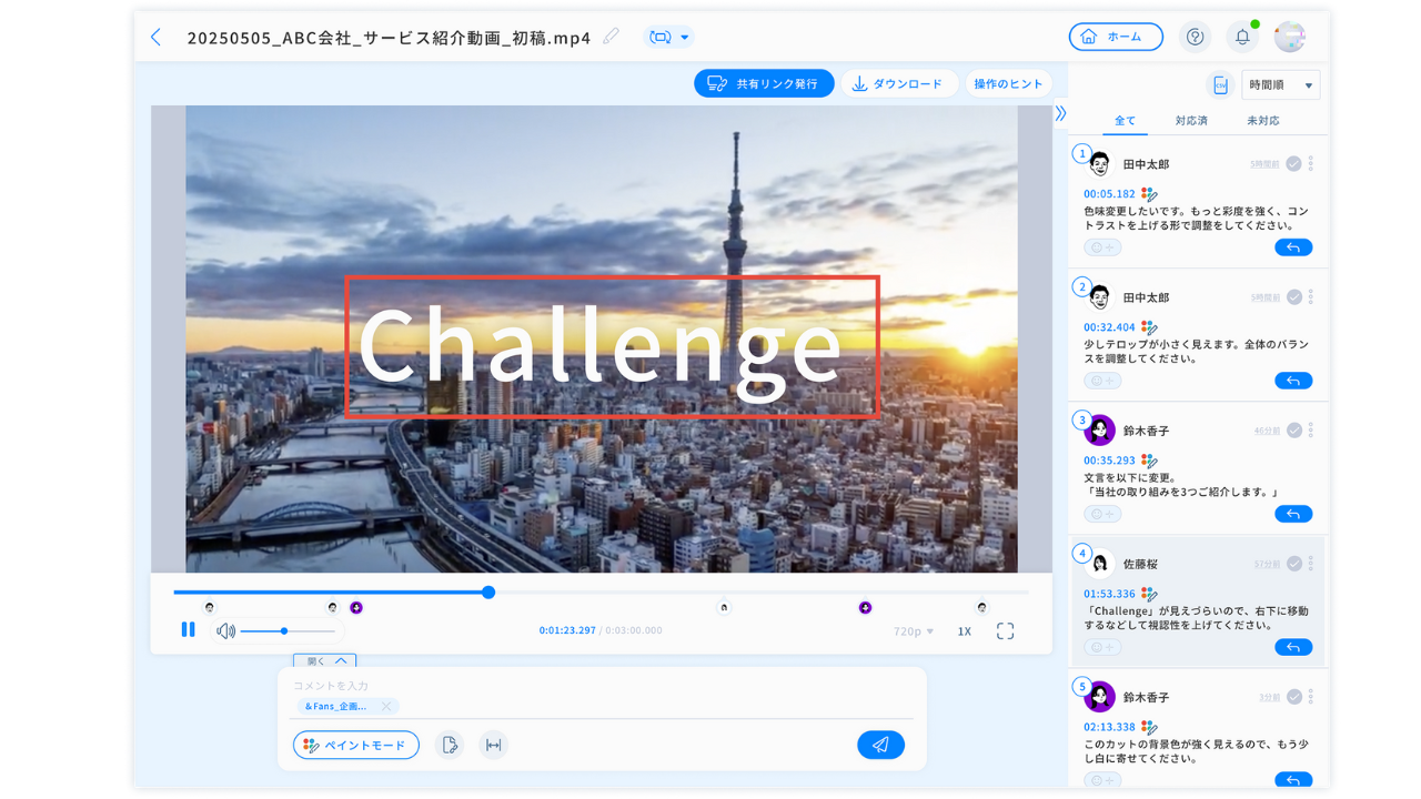 コメントをクリックすると、書き込まれた秒数や箇所に自動で移動するため、内容の確認が楽になります。
