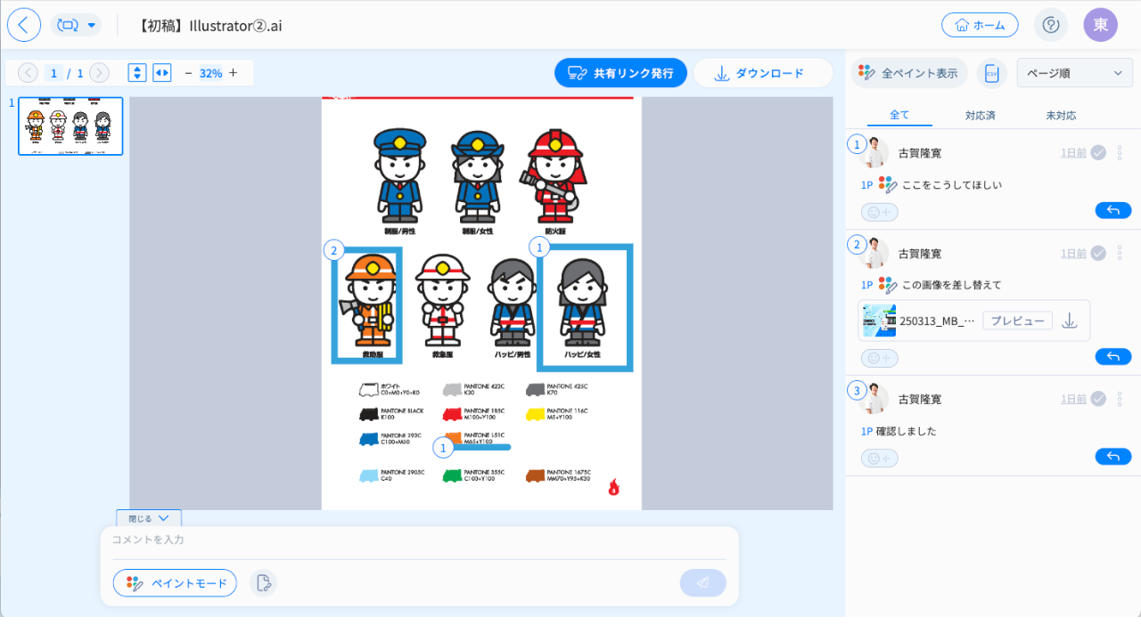 ファイル上に直接ペイントできるので、修正してほしい箇所を明確に示すことができます。