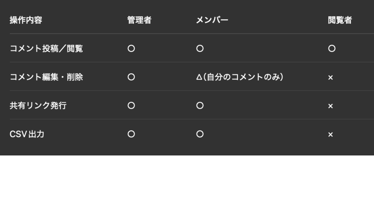 各ユーザーの権限に応じて、チェックバック機能で実行可能な操作に制限があります。