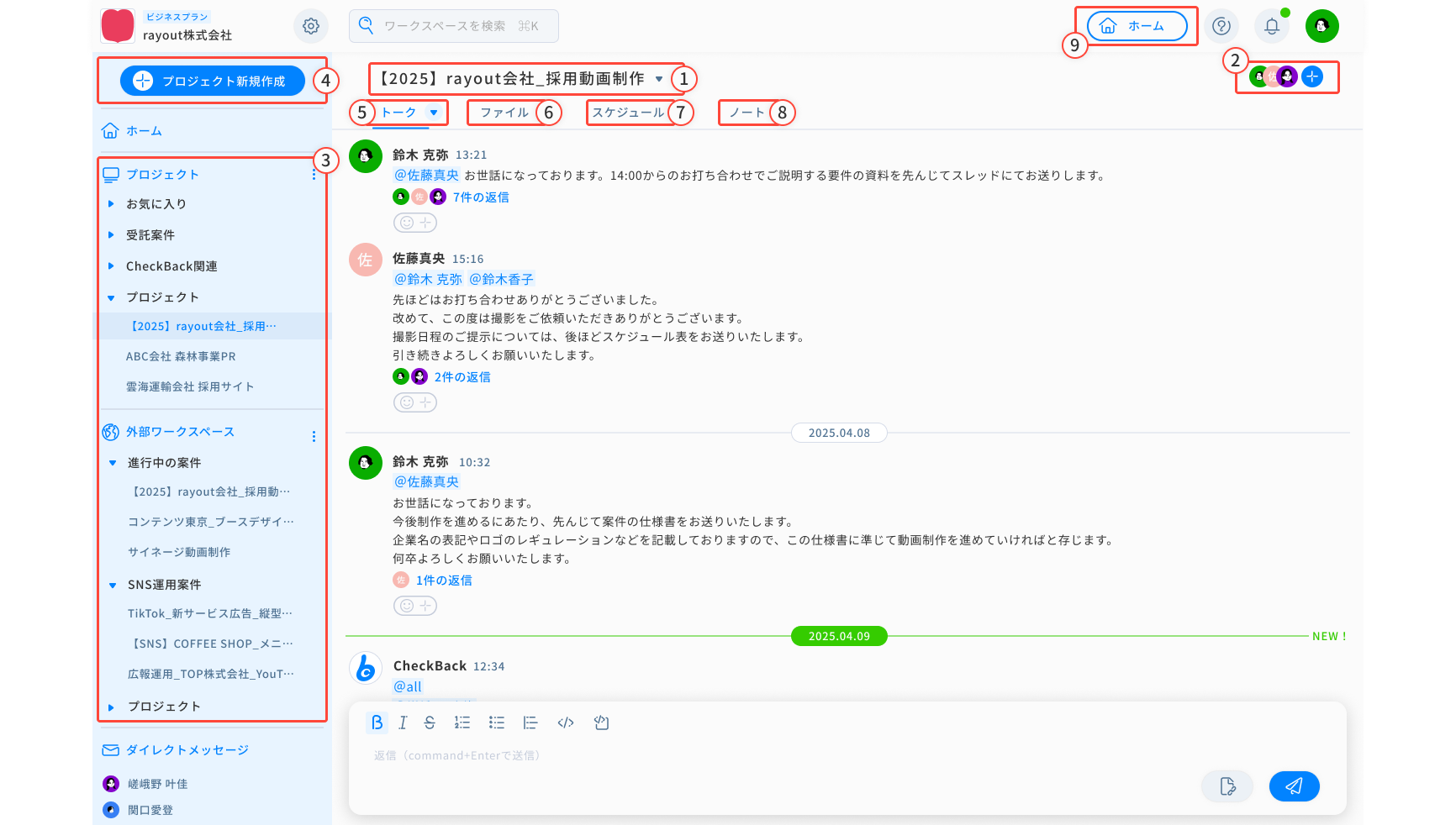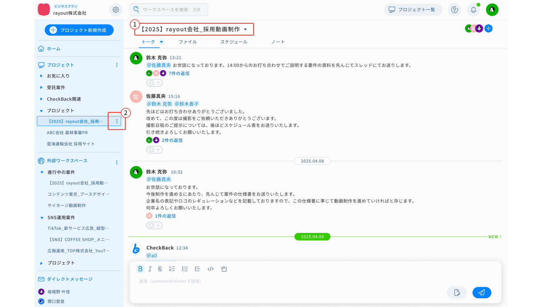 制作業務に必要なコミュニケーションを効率的に行うためのチャット機能です。