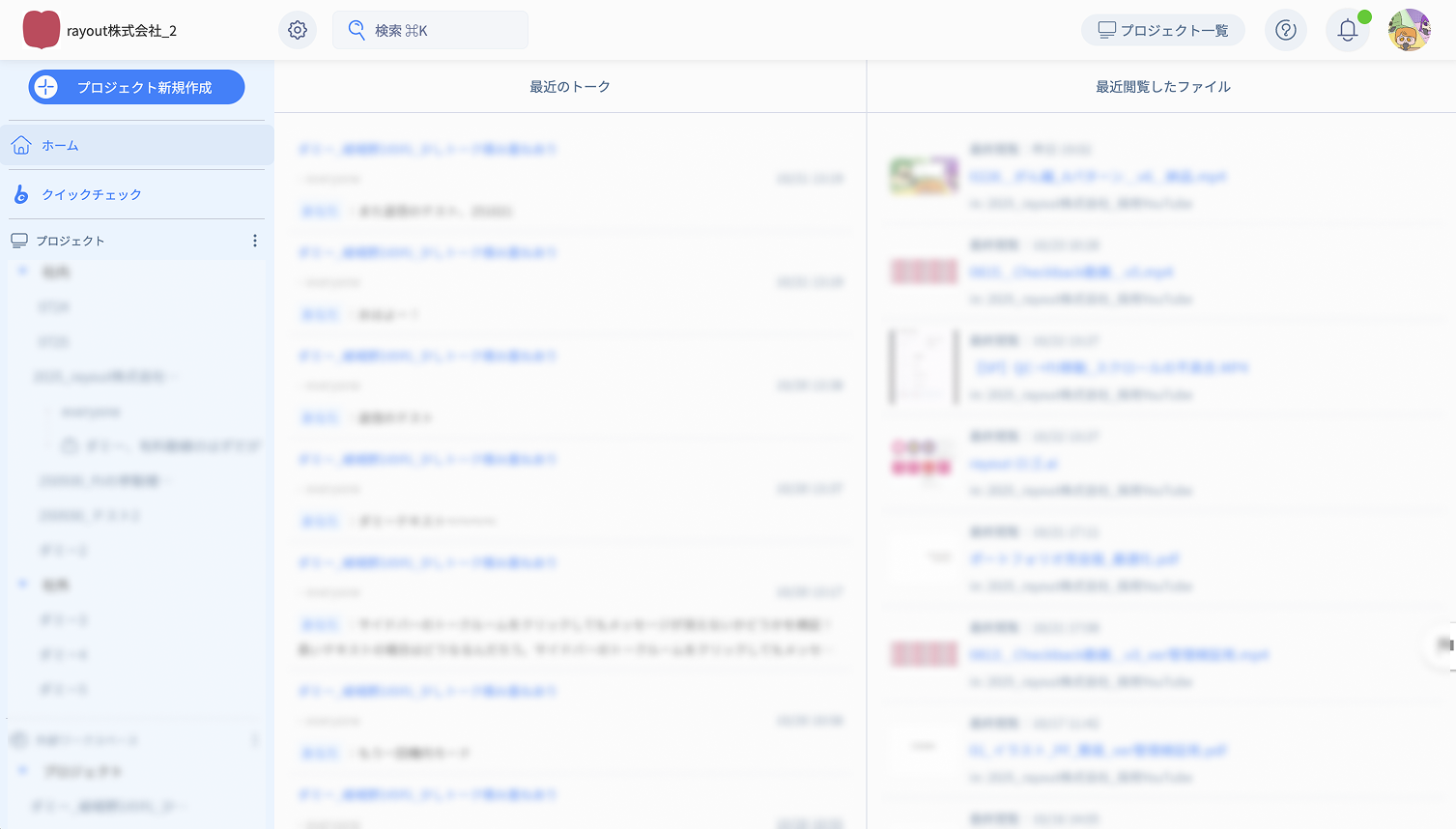 所属している全プロジェクト内の「最近のトーク」「最近閲覧したファイル」を横断して確認できます。