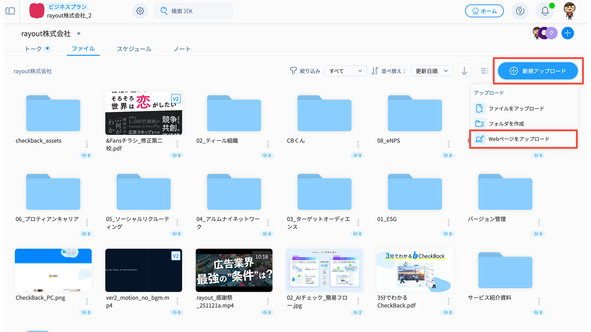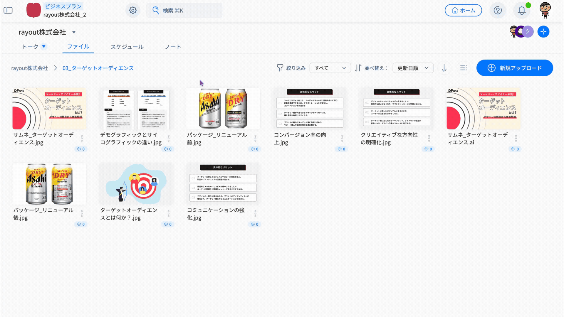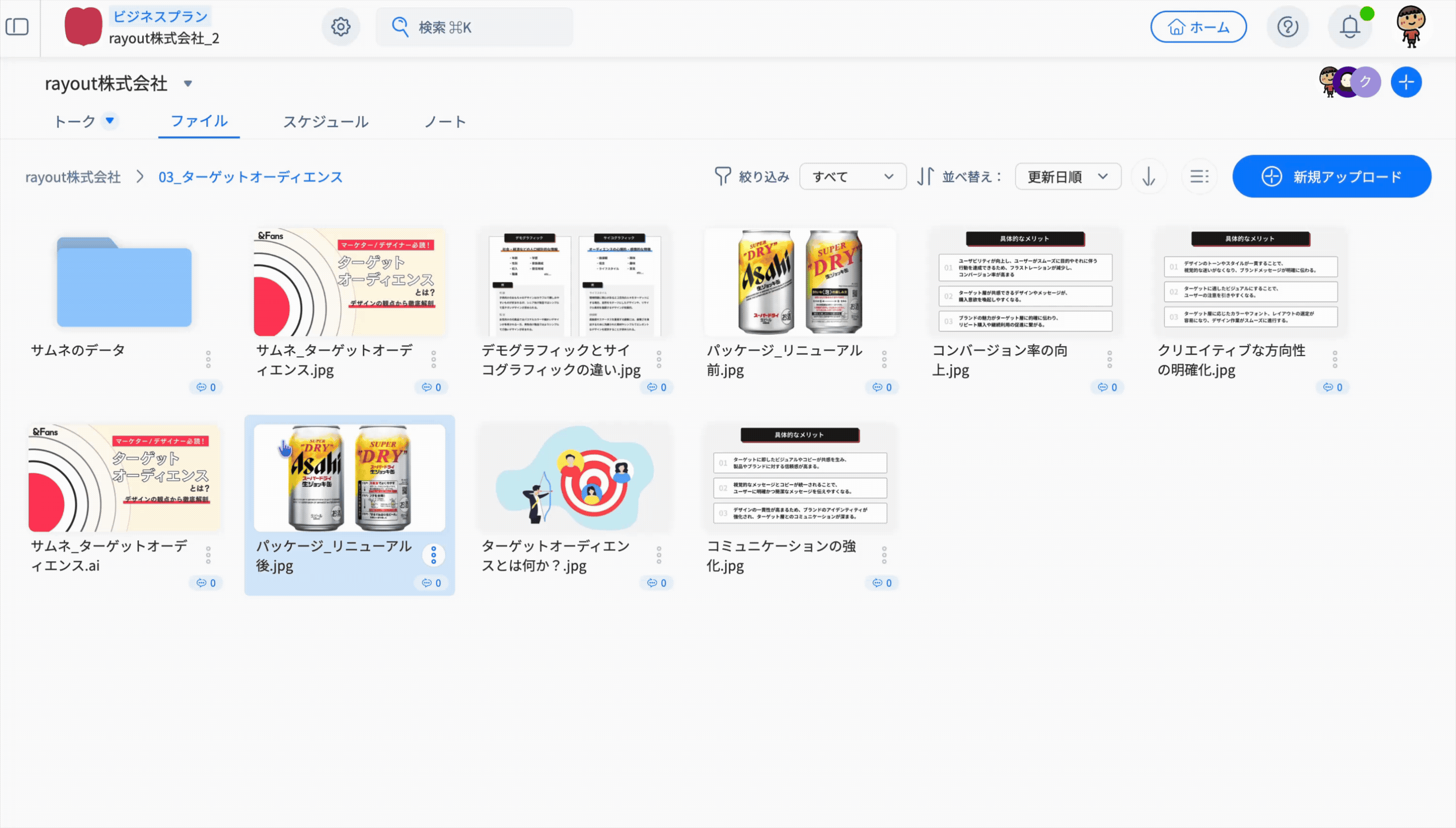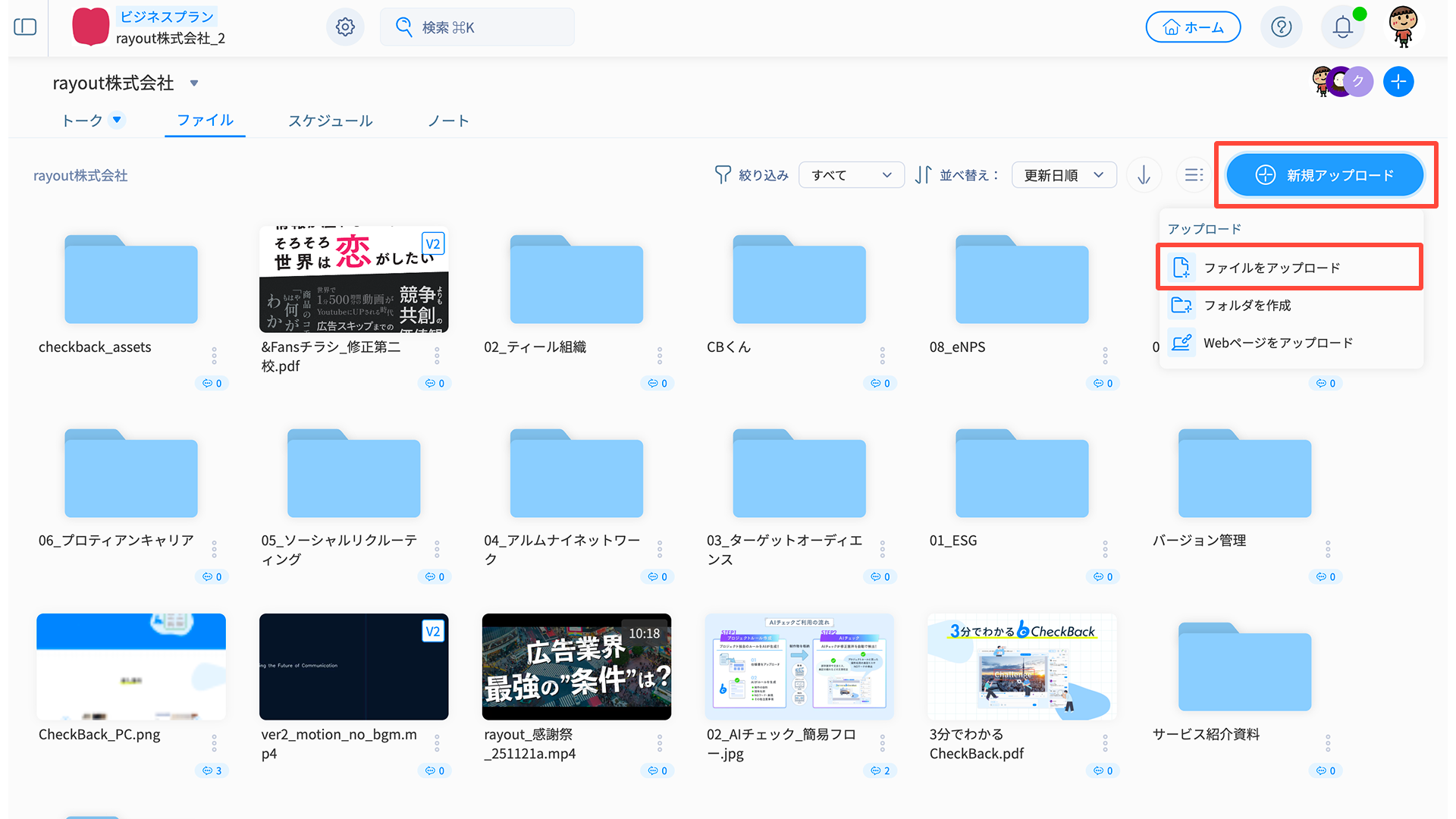1つの制作物や資料として扱われる単位で、アップロード後はプレビューやチェックバック、共有などを行うことができます。
