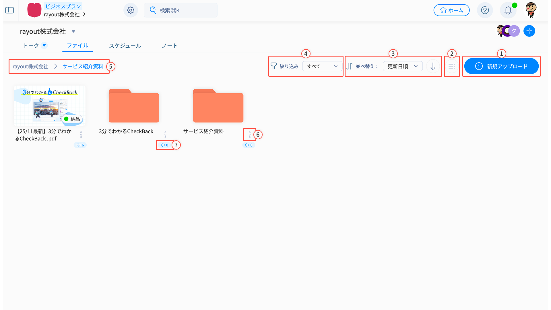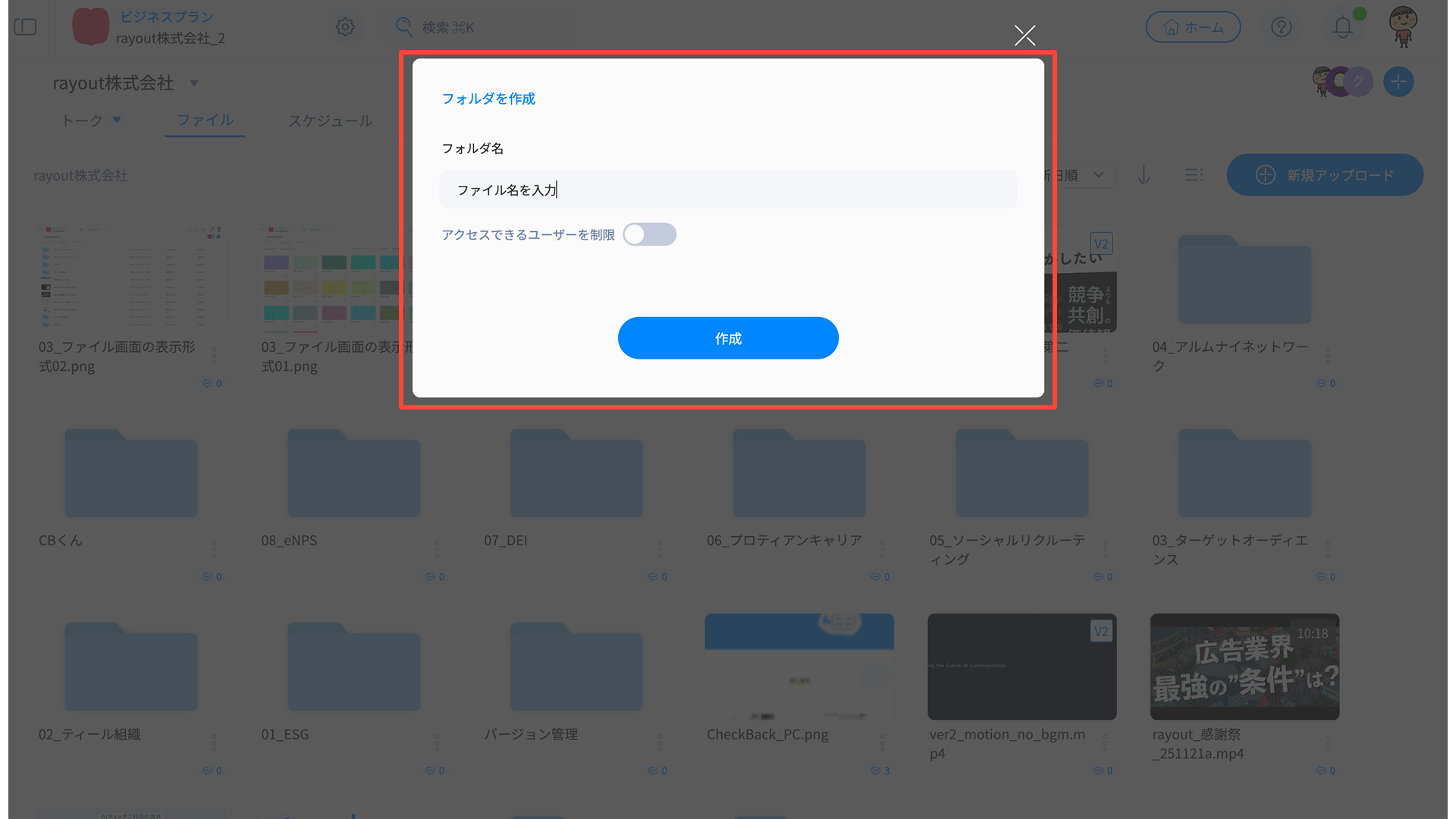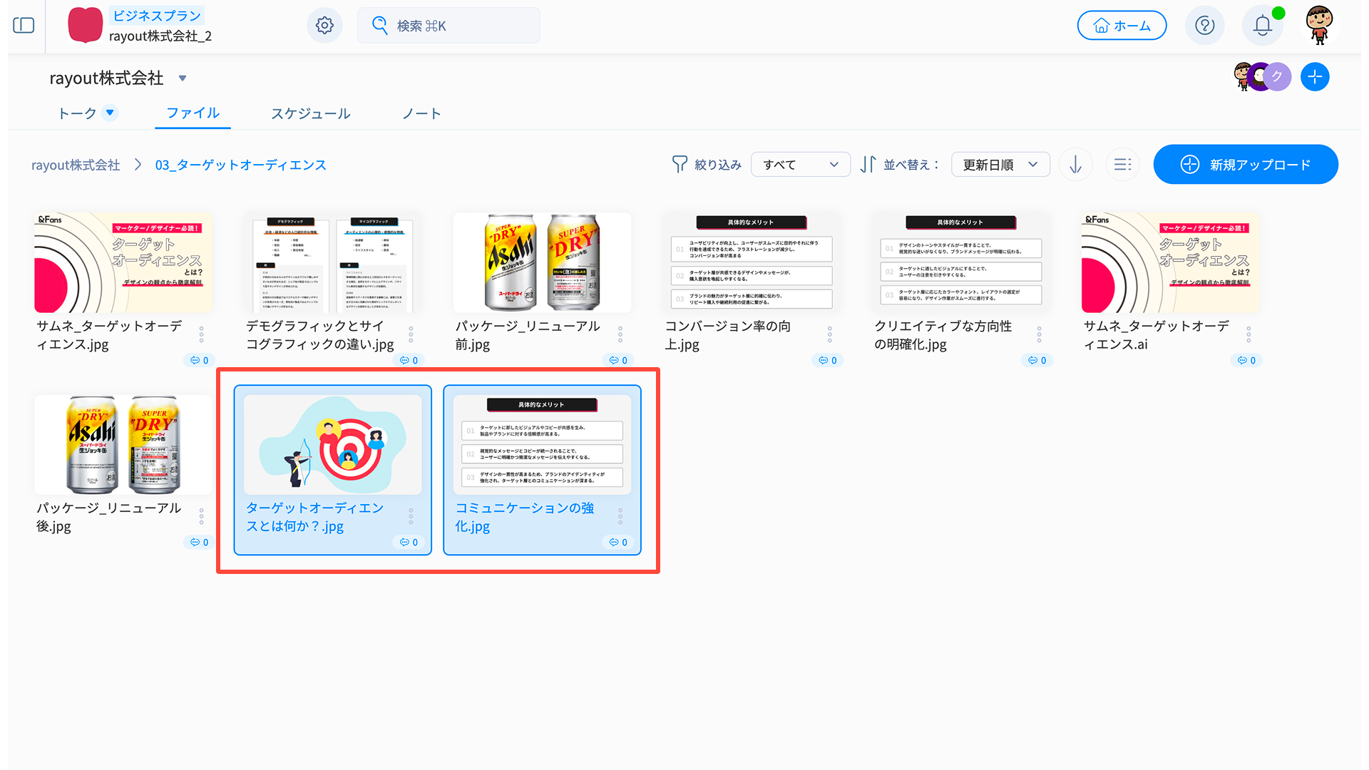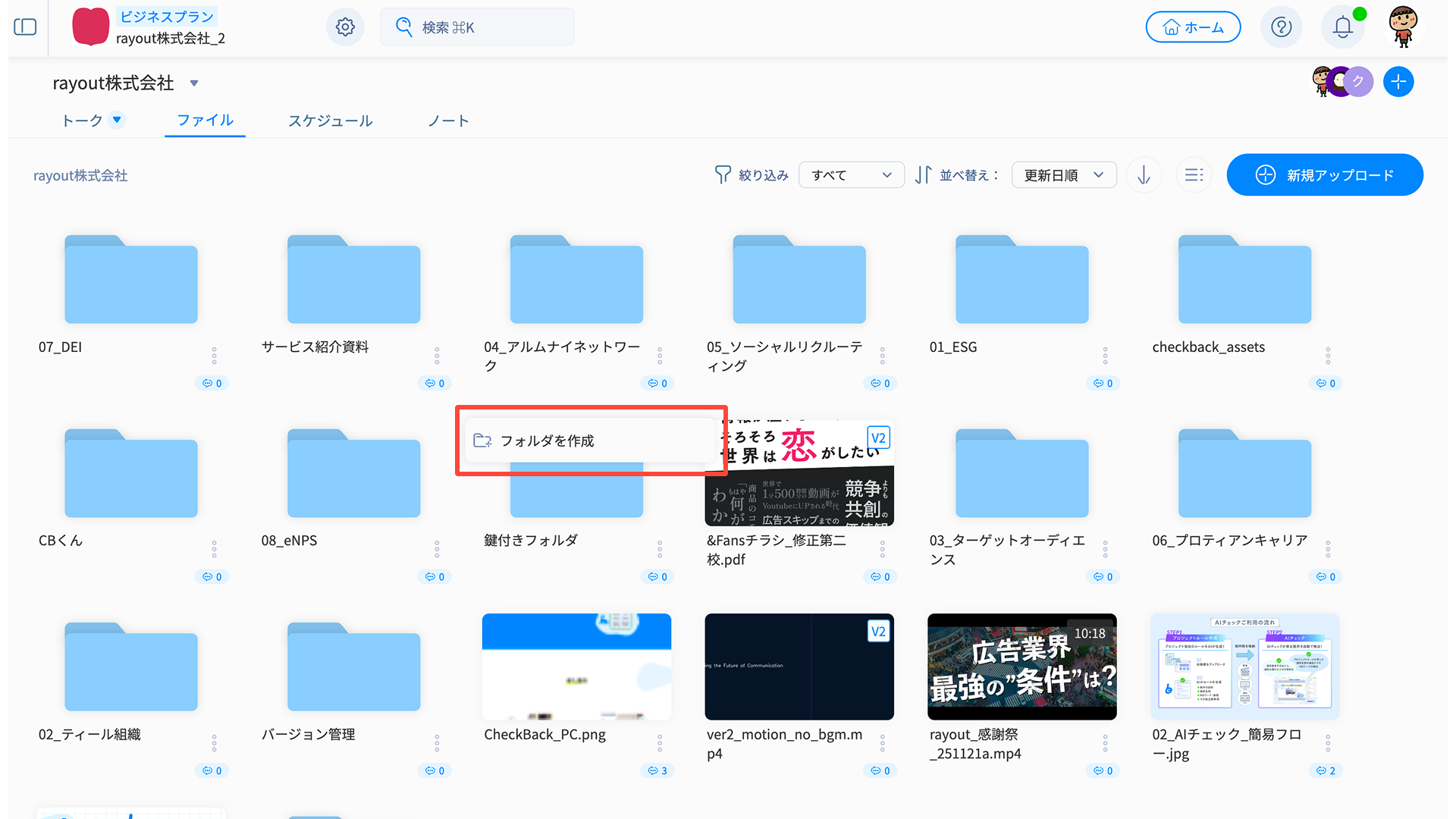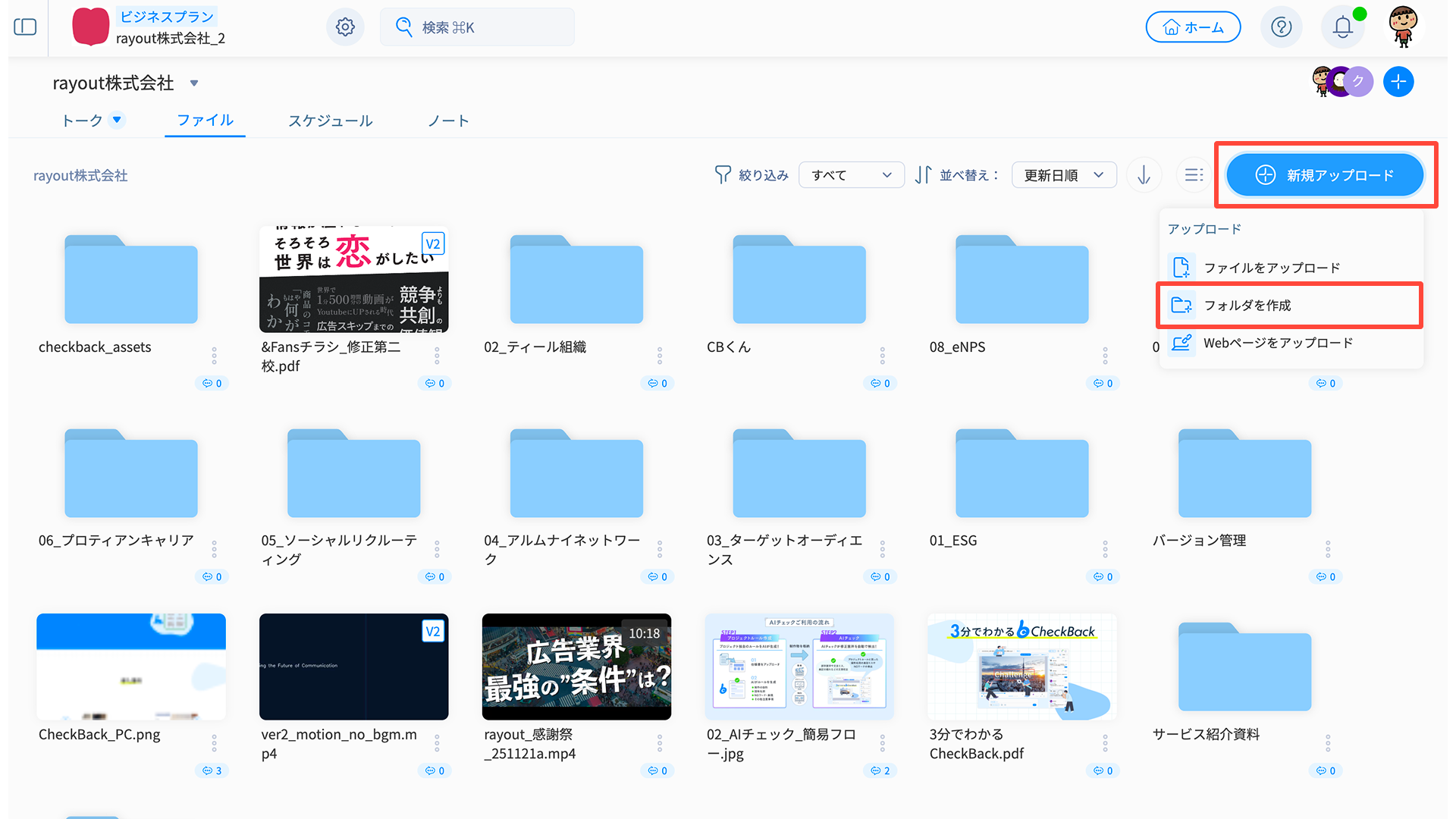 1つの制作物や資料として扱われる単位で、アップロード後はプレビューやチェックバック、共有などを行うことができます。