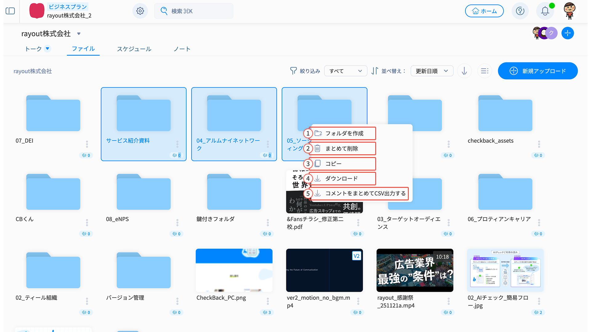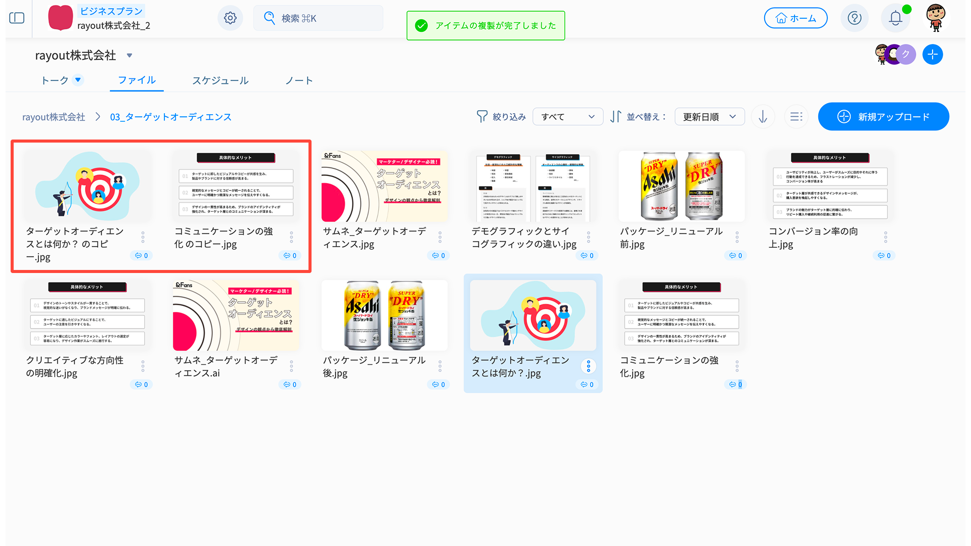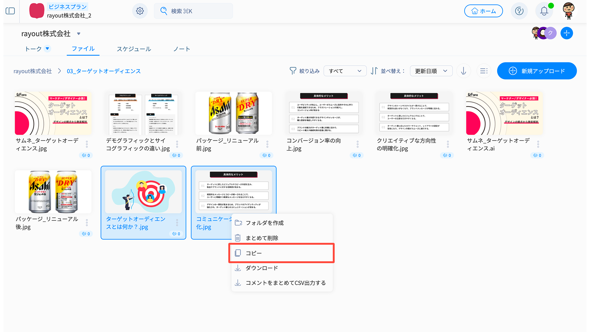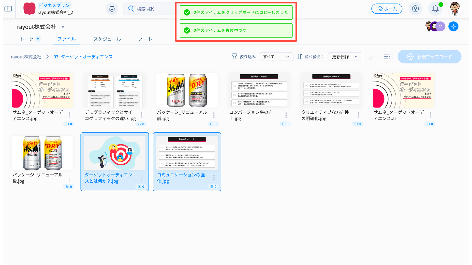 ファイル機能では、アップロードや整理だけでなく、ファイルの移動や複製といった応用的な操作も行えます。