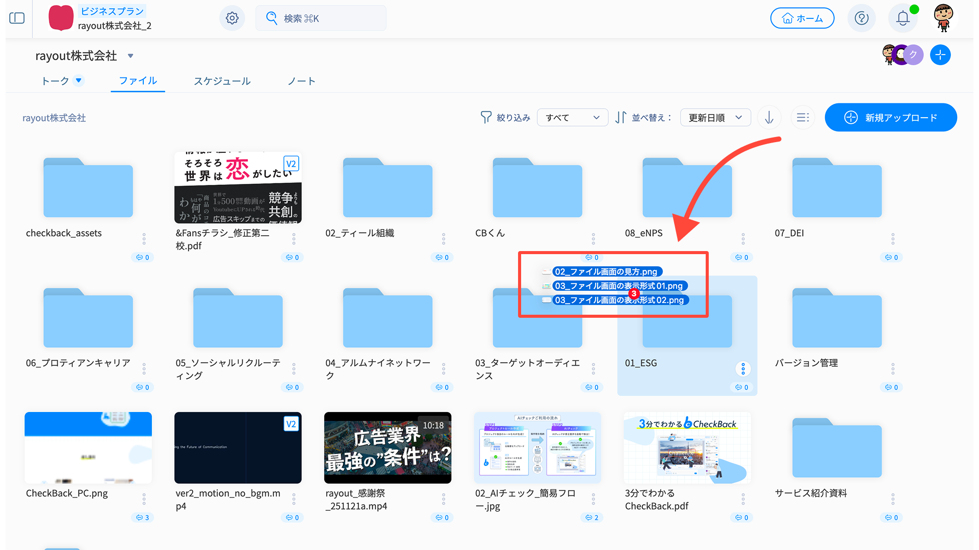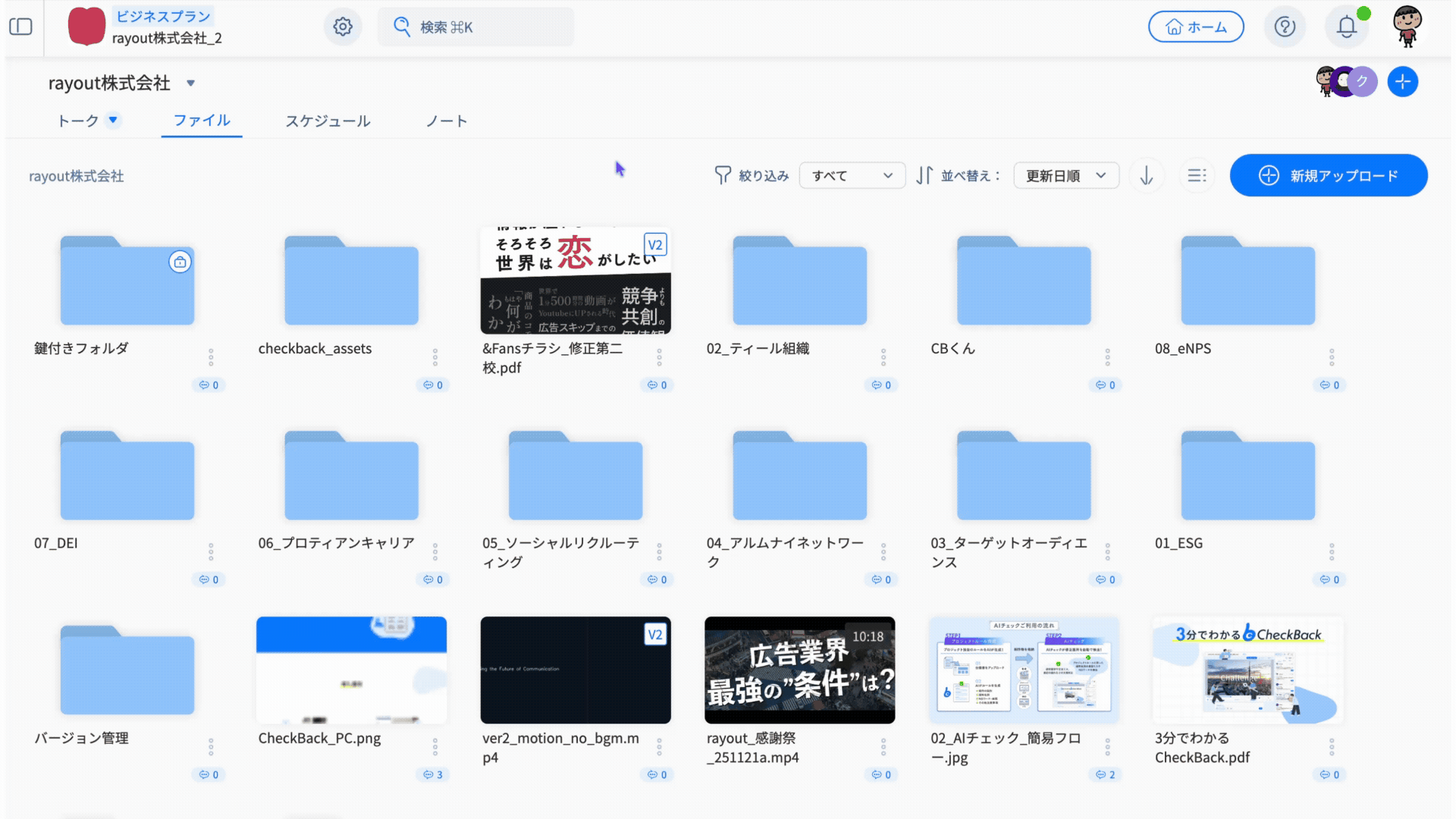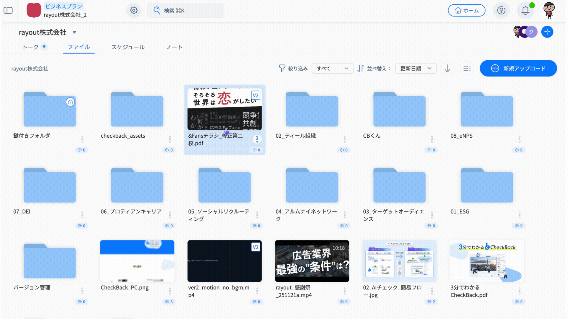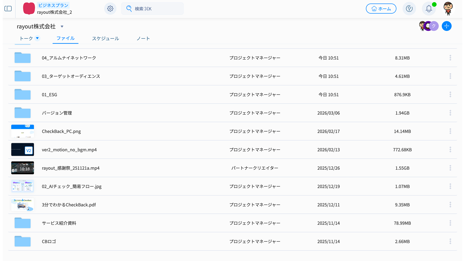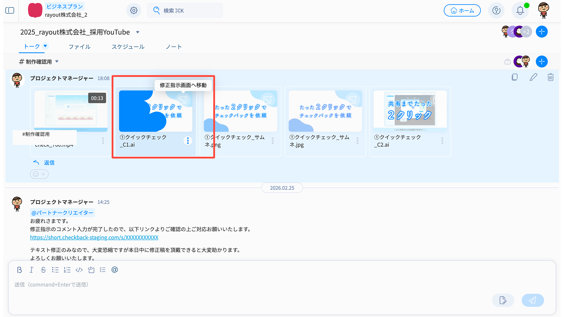 制作に必要なあらゆるファイル管理を、CheckBack上で完結できます。