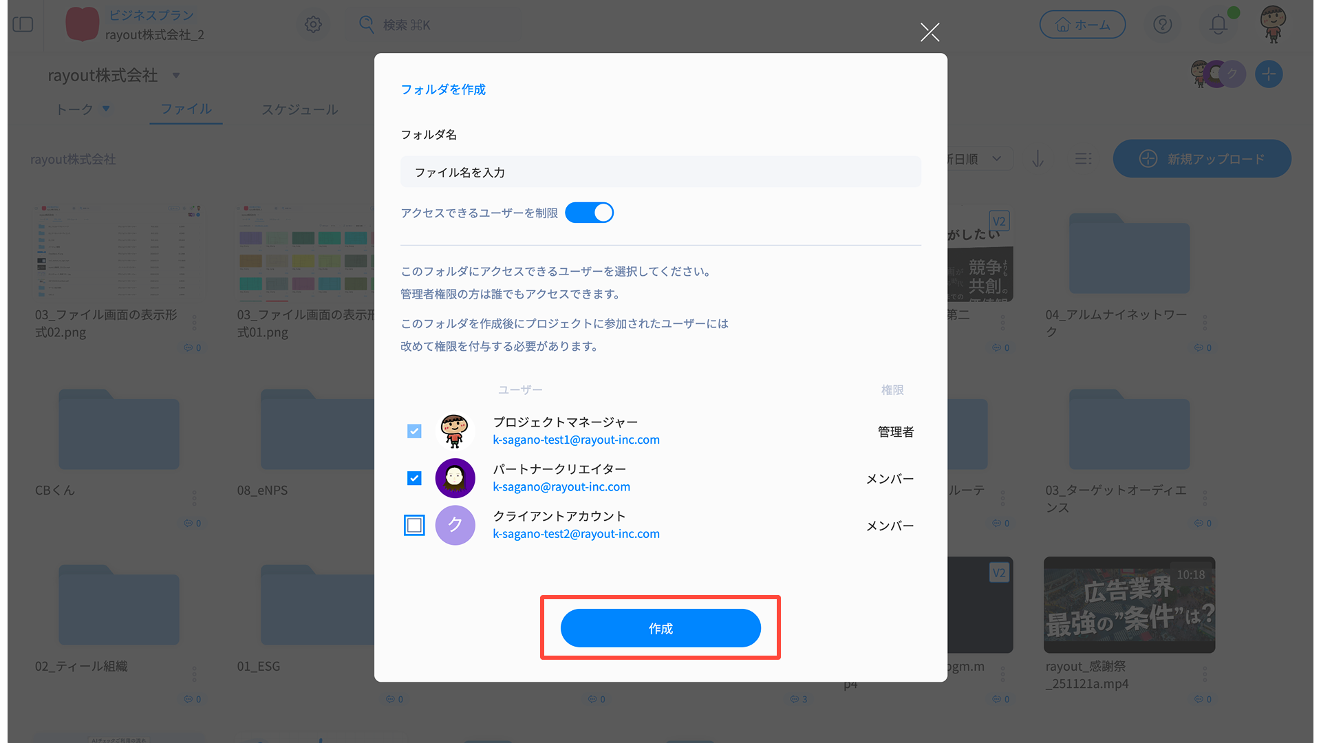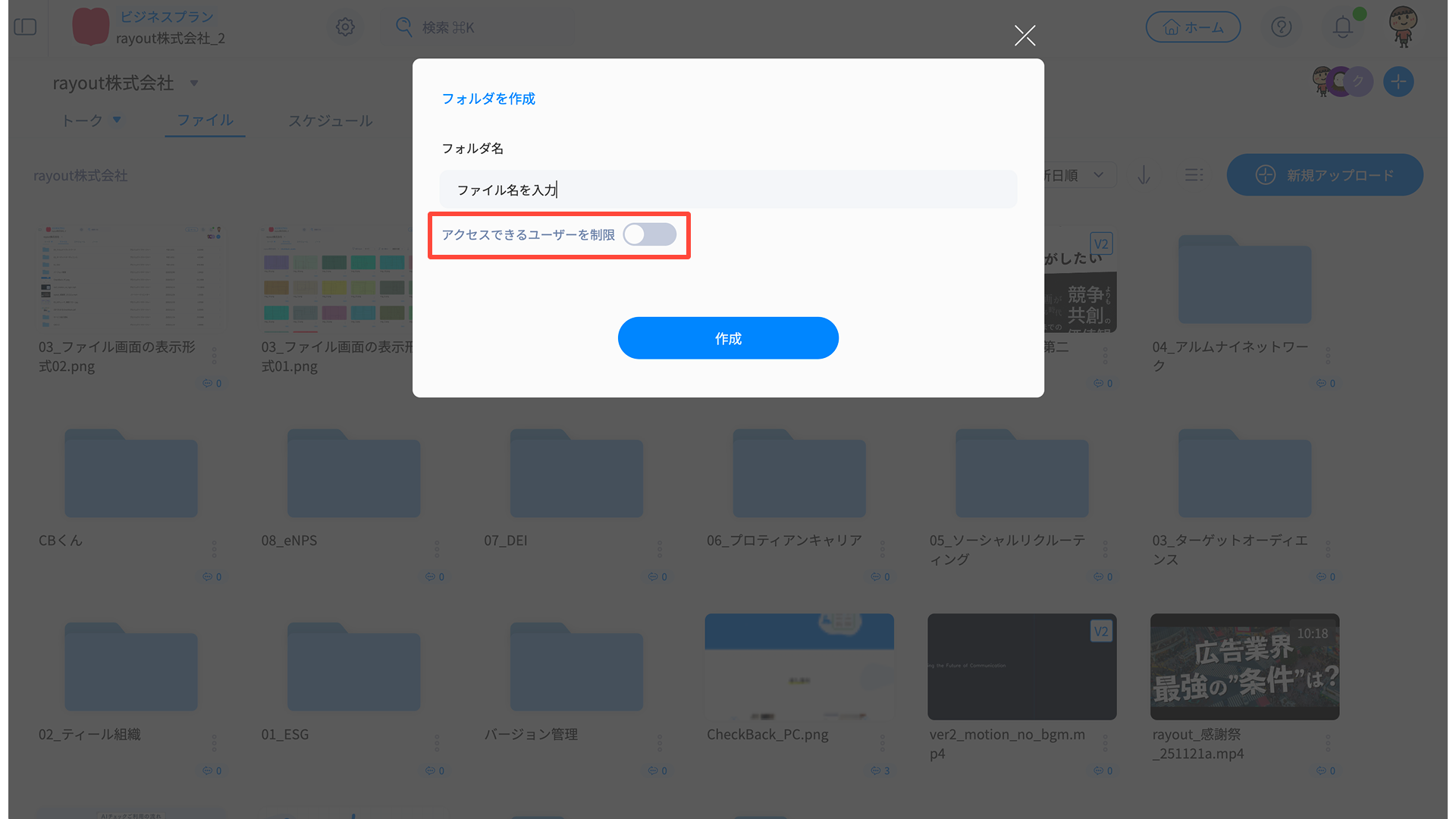 権限のないユーザーにはフォルダ自体が表示されないため、共有範囲を限定したいファイルの管理に適しています。