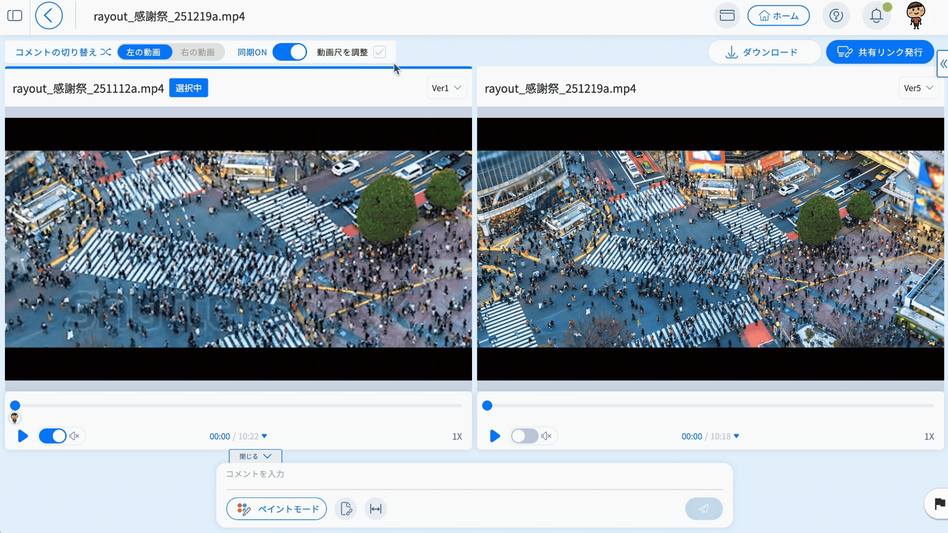 動画見比べで「動画尺の同期再生」モードを追加しました
