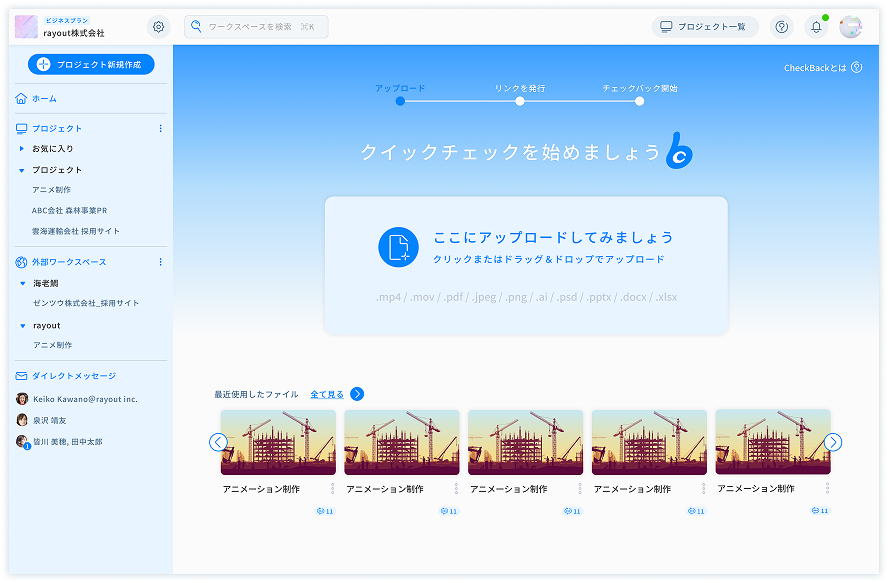 プロジェクトメンバーは、そのプロジェクト内でのみファイルの確認やコメント、コミュニケーションを行うことができ、他のプロジェクトやワークスペースの情報にはアクセスできません。
