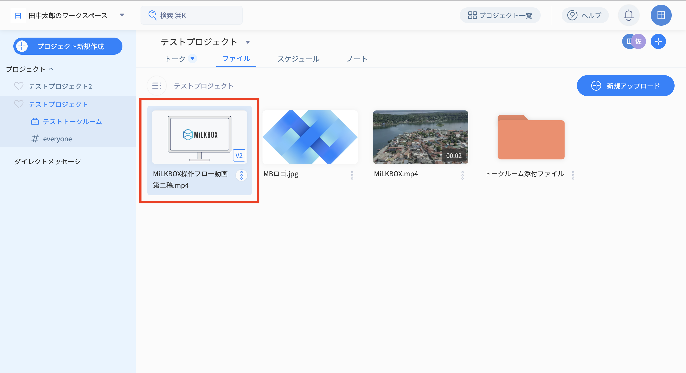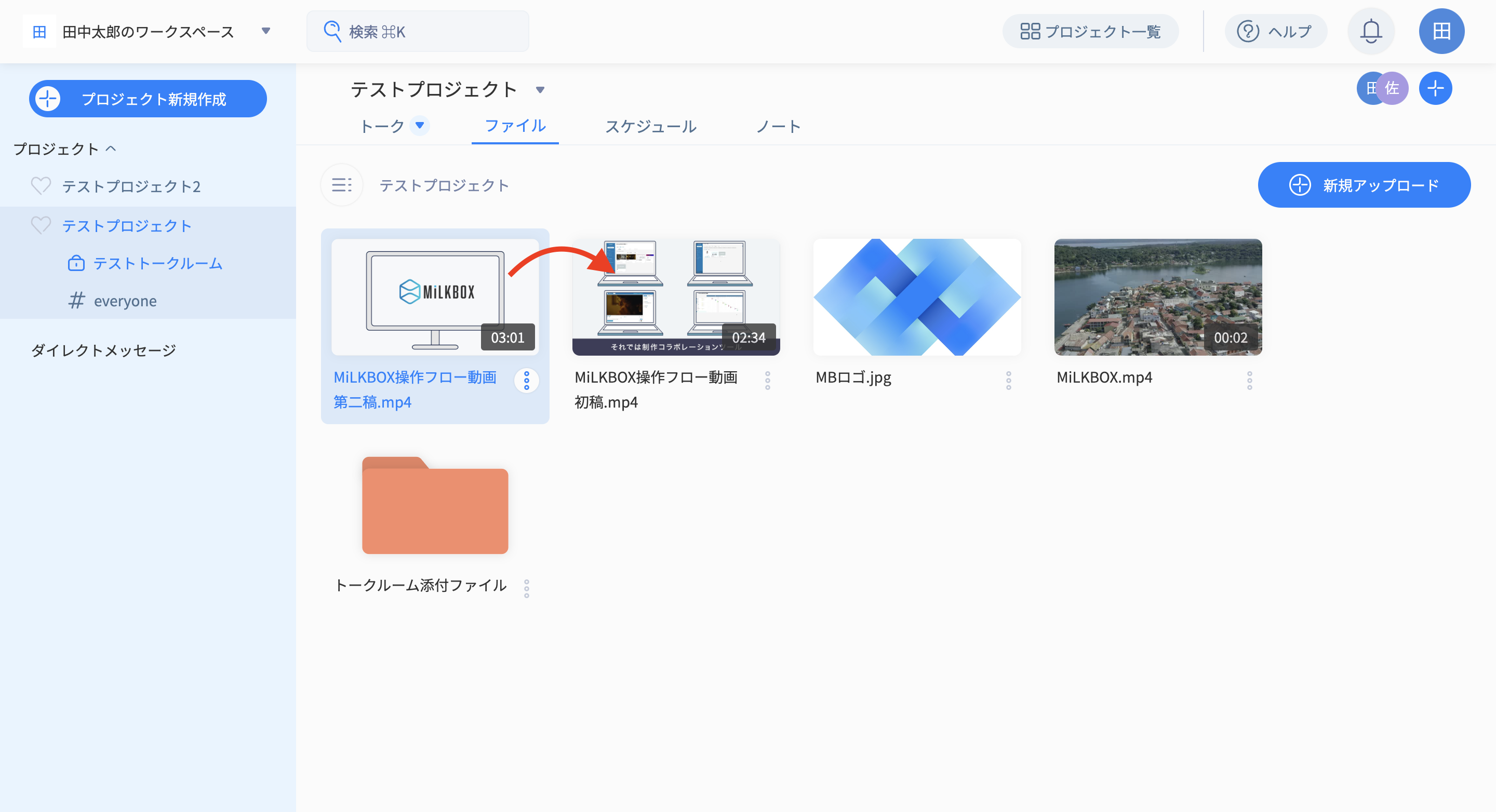 バージョンで管理したいファイル同士をドラッグ&ドロップで重ねると、「v2」などの表示が増えて自動でバージョンが作成されます。