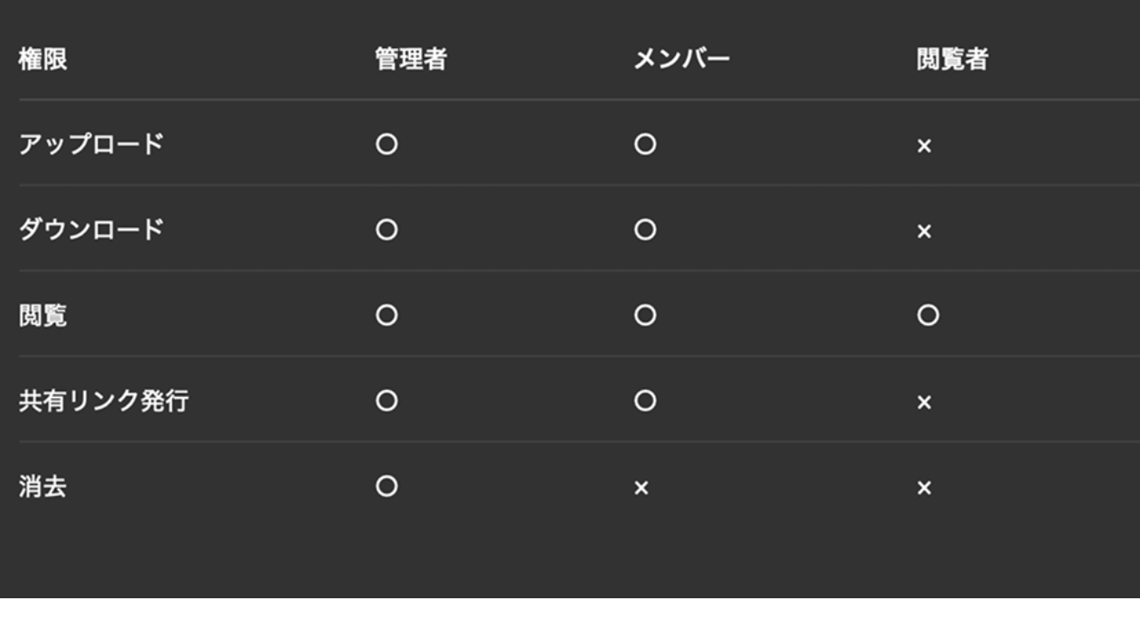 各ユーザーの権限に応じて、ファイル機能で実行可能な操作に制限があります。