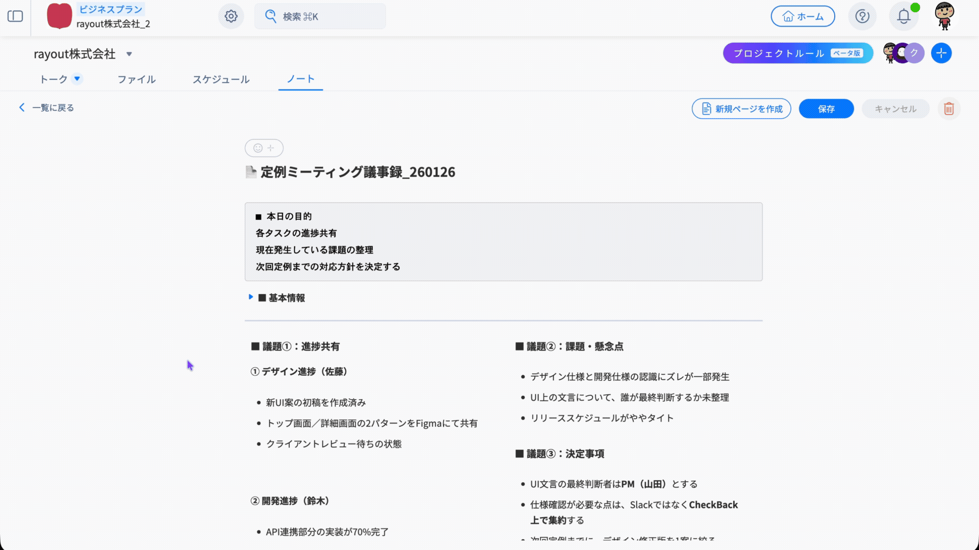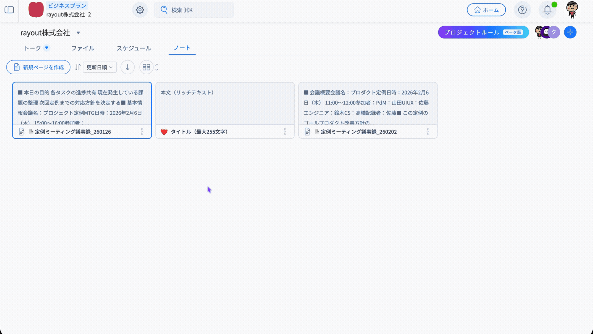 プロジェクトノート機能のアップデート