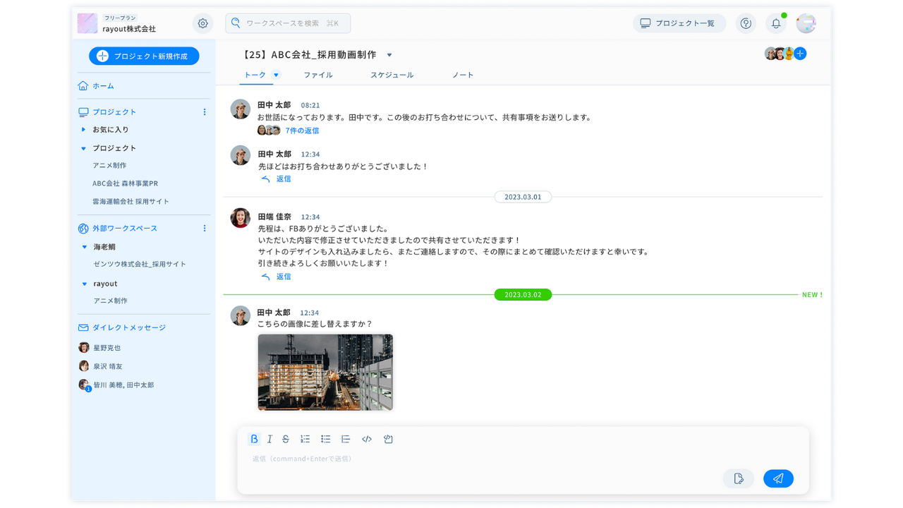 メール通知 :プロジェクトの進行やメンションがメールで届きます