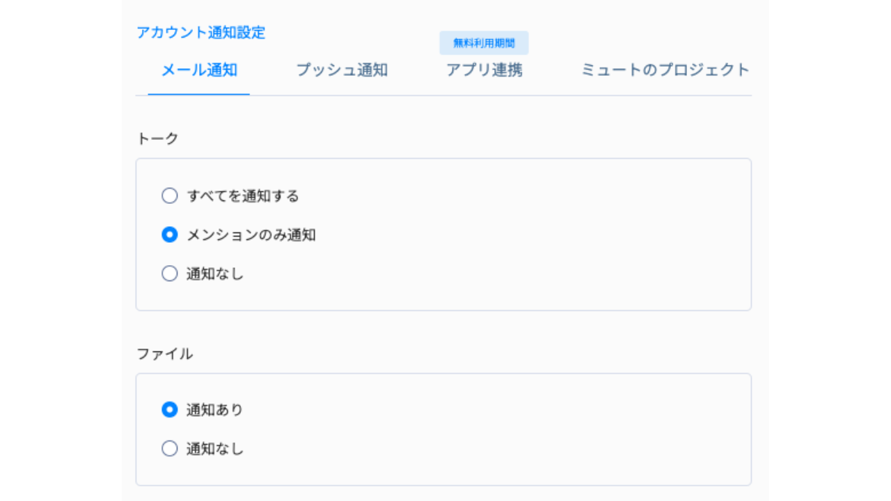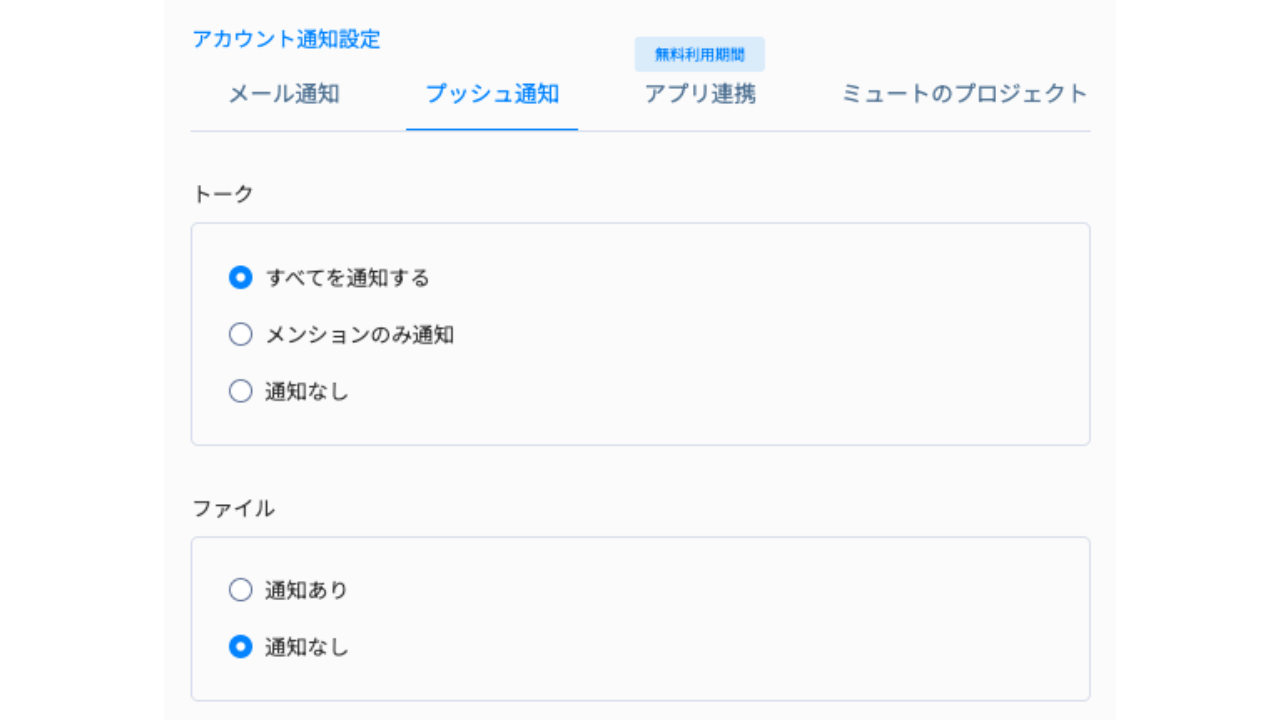 こちらも「すべて通知」「メンションのみ」「通知なし」から選択できます。