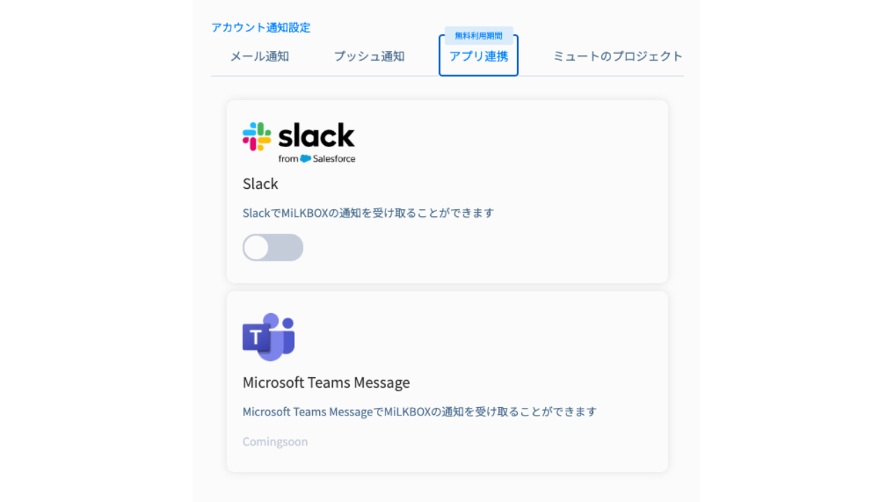 通知をSlackやMicrosoft Teamsでも受け取ることが可能です。