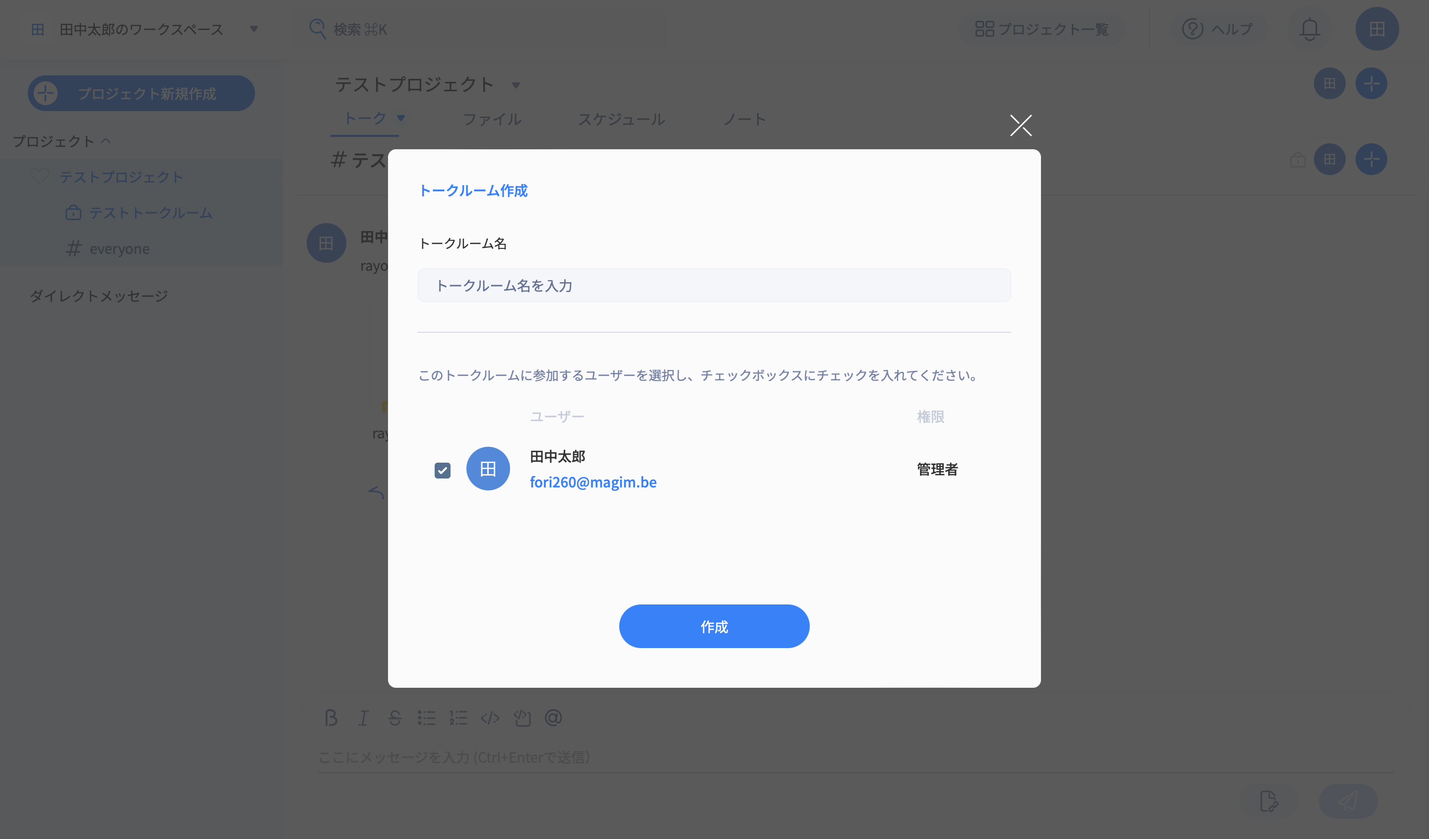 - トークルーム名と参加メンバーを設定して「作成」をクリック