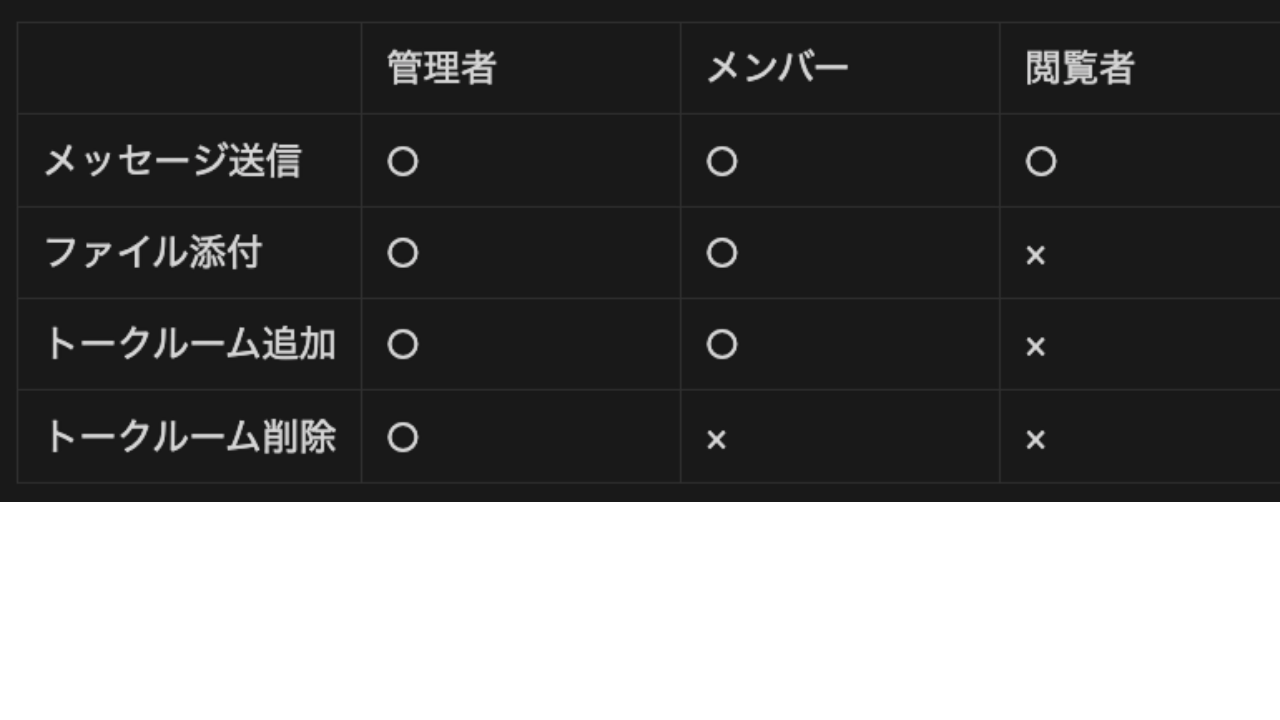 各ユーザーの権限に応じて、トーク機能で実行可能な操作に制限があります。