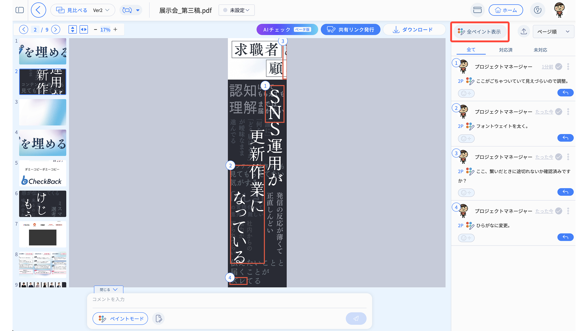 プレビューが可能な形式のみ利用可能です。 - コメント・ペイント機能で修正指示